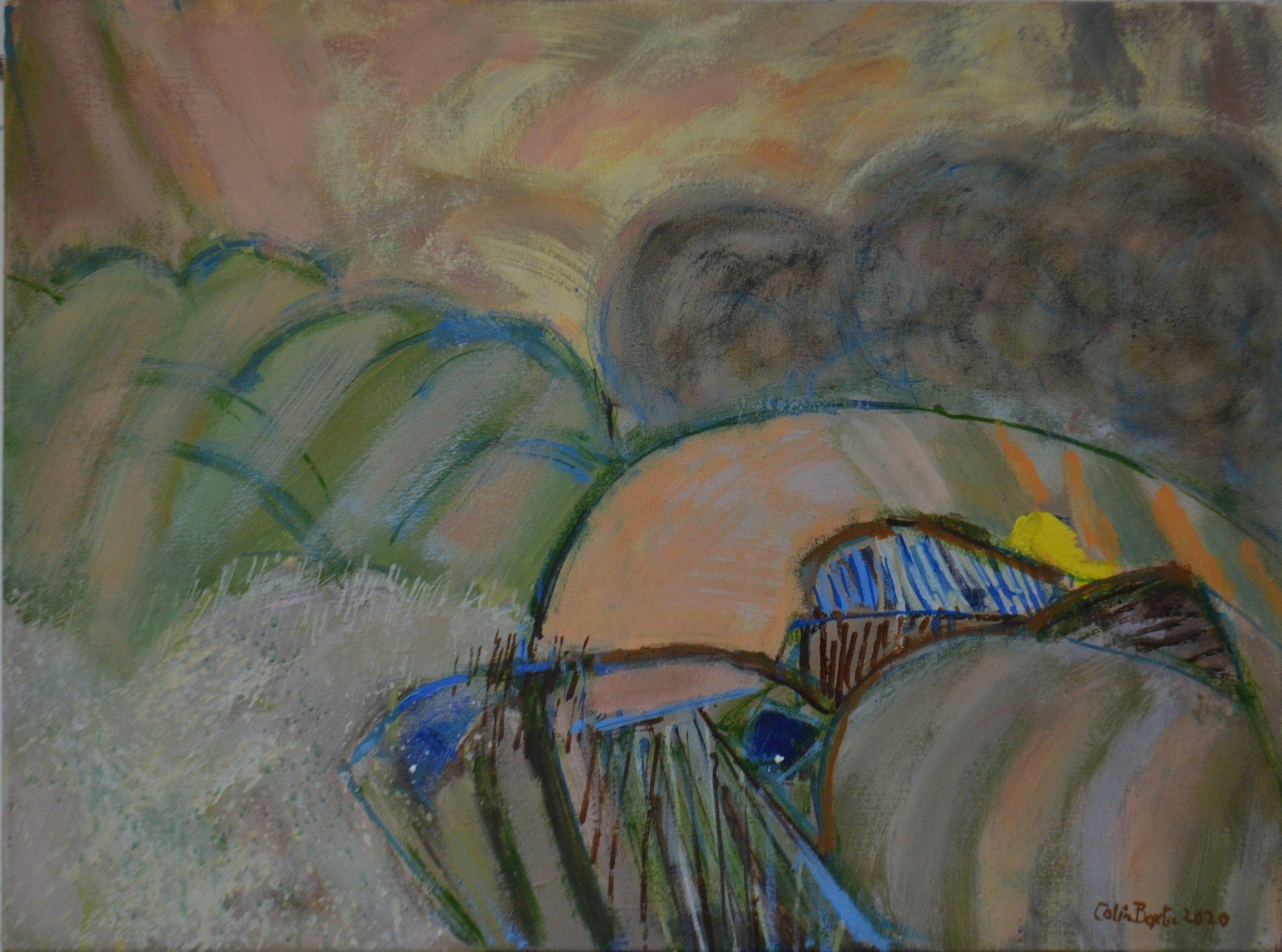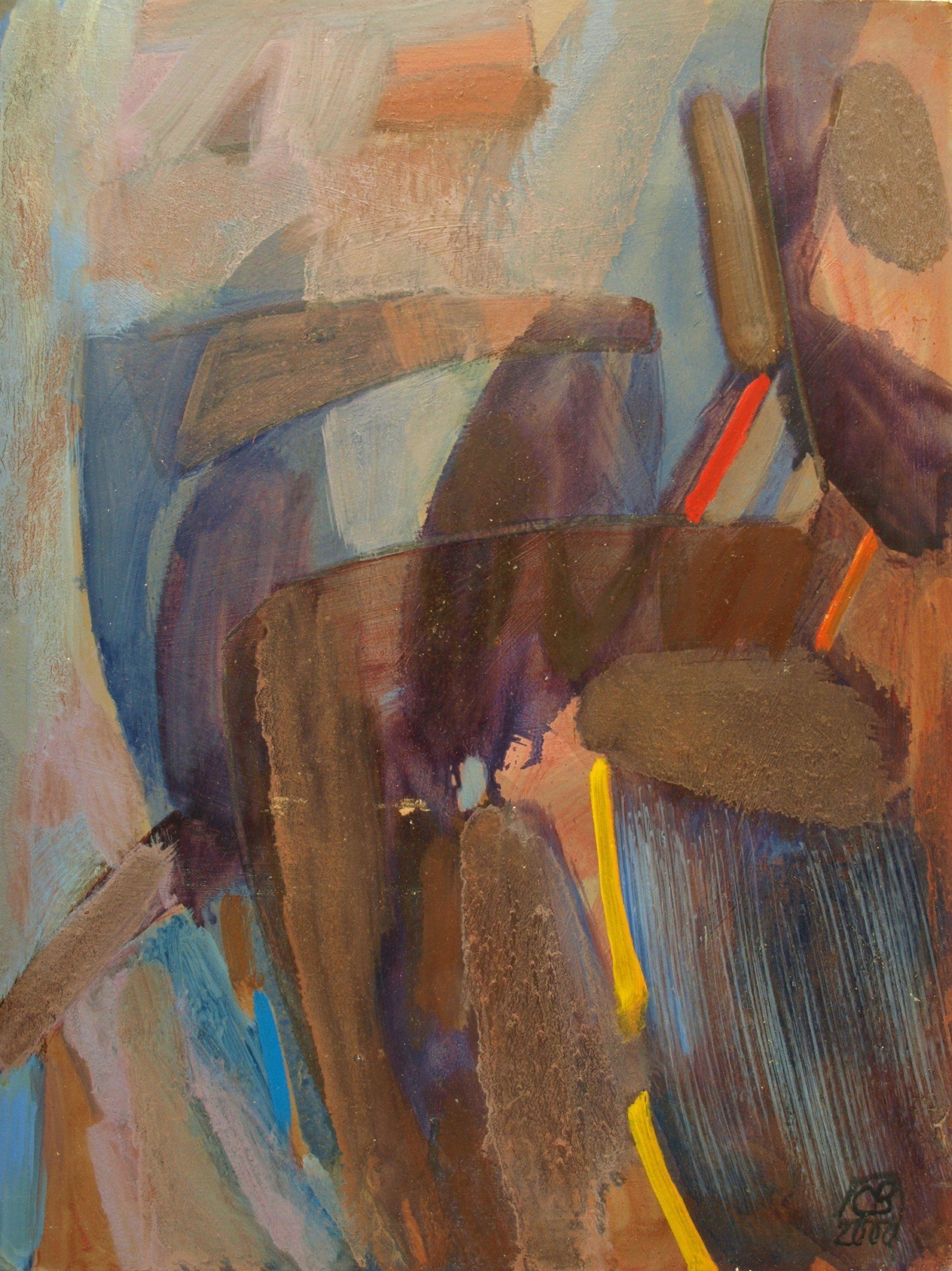 The series labelled abstract is a little bit odd because in fact most painting is abstract. Nothing realistic comes off the end of a paint brush. I characterise it by using marks that do not have any direct reference to images of the world around us. They come from the reaction of one mark to another, they are ordered but only in connection with each other. They may use chance, as in accidental splashes and marks. They often originate from the subconscious.