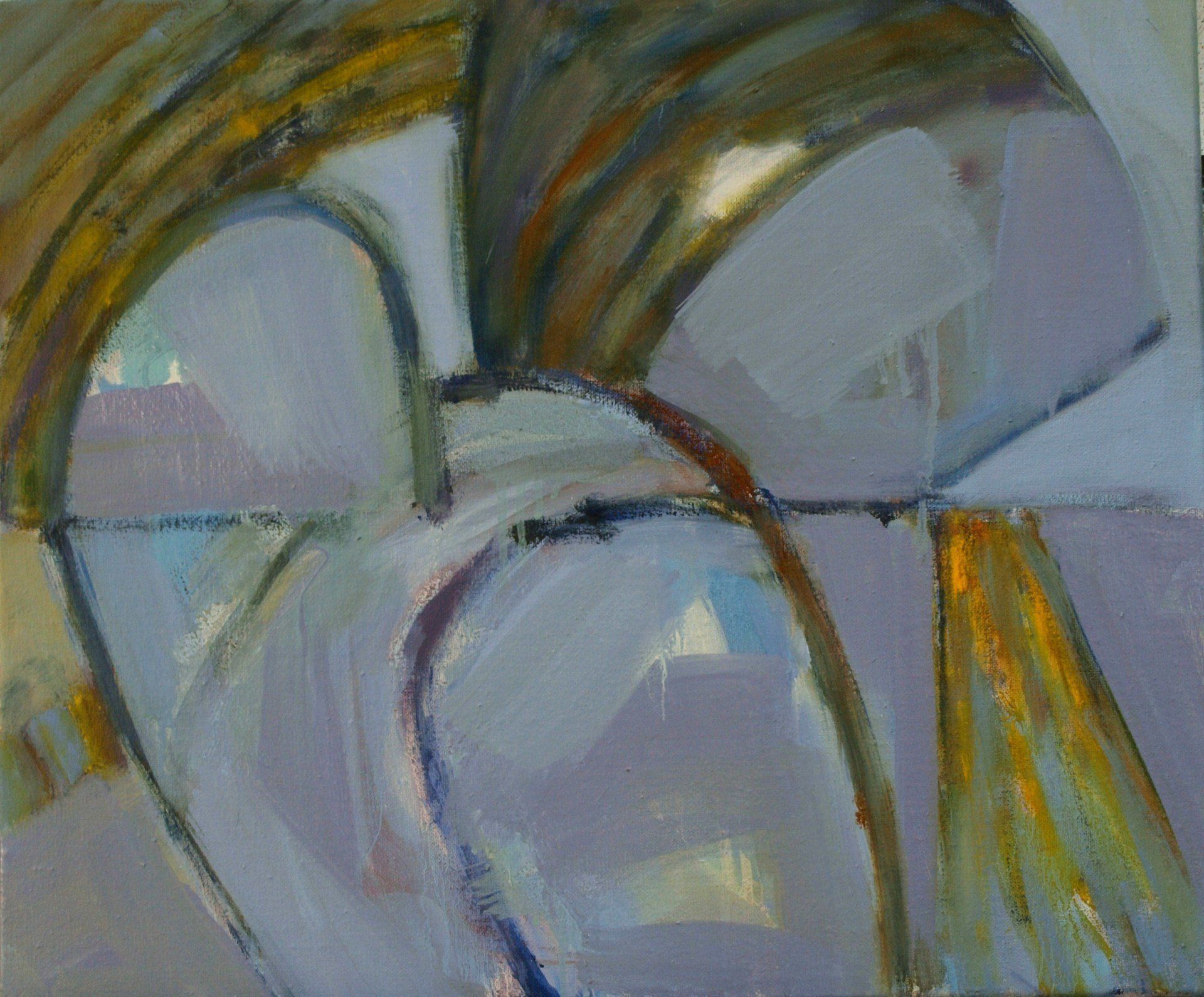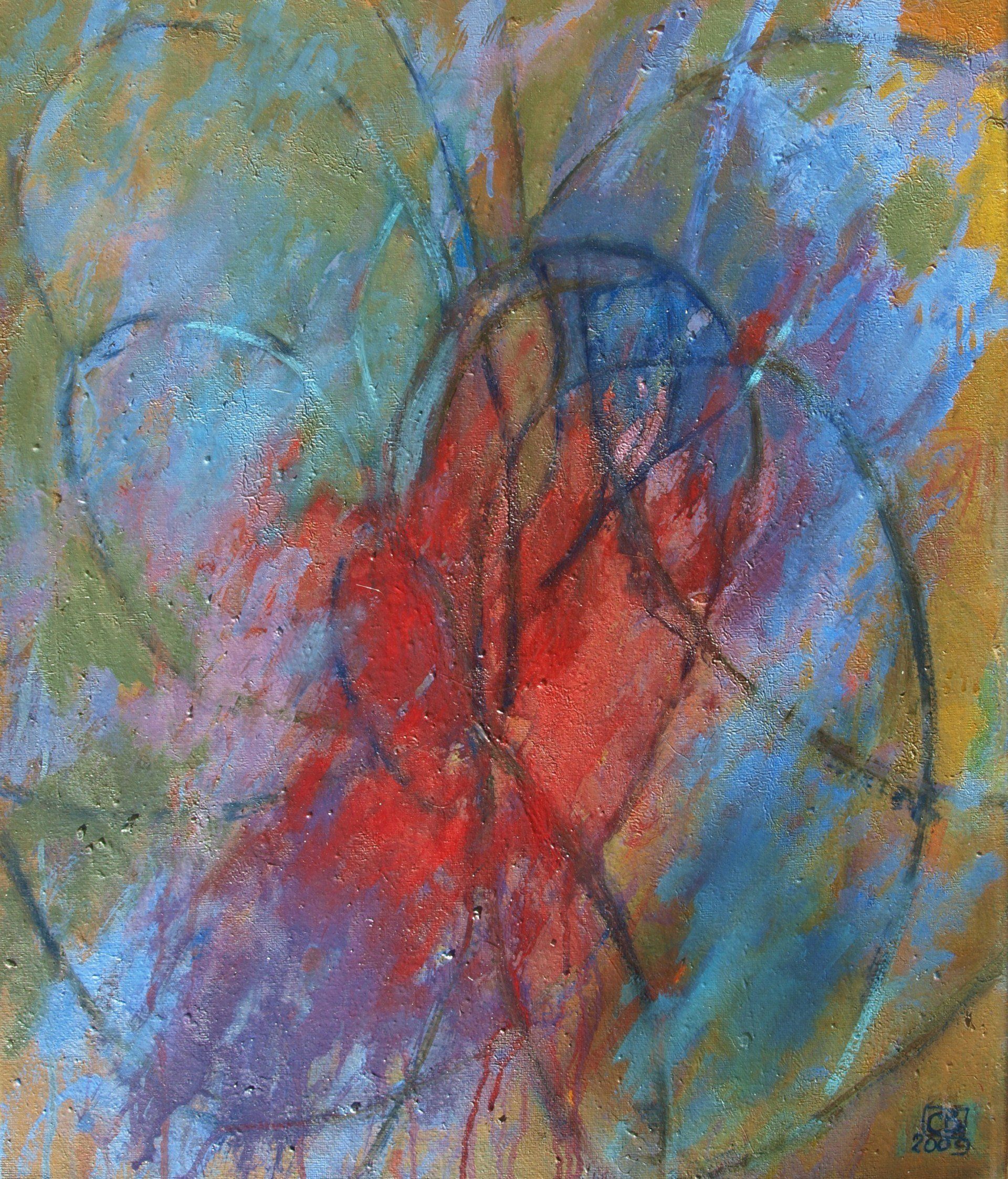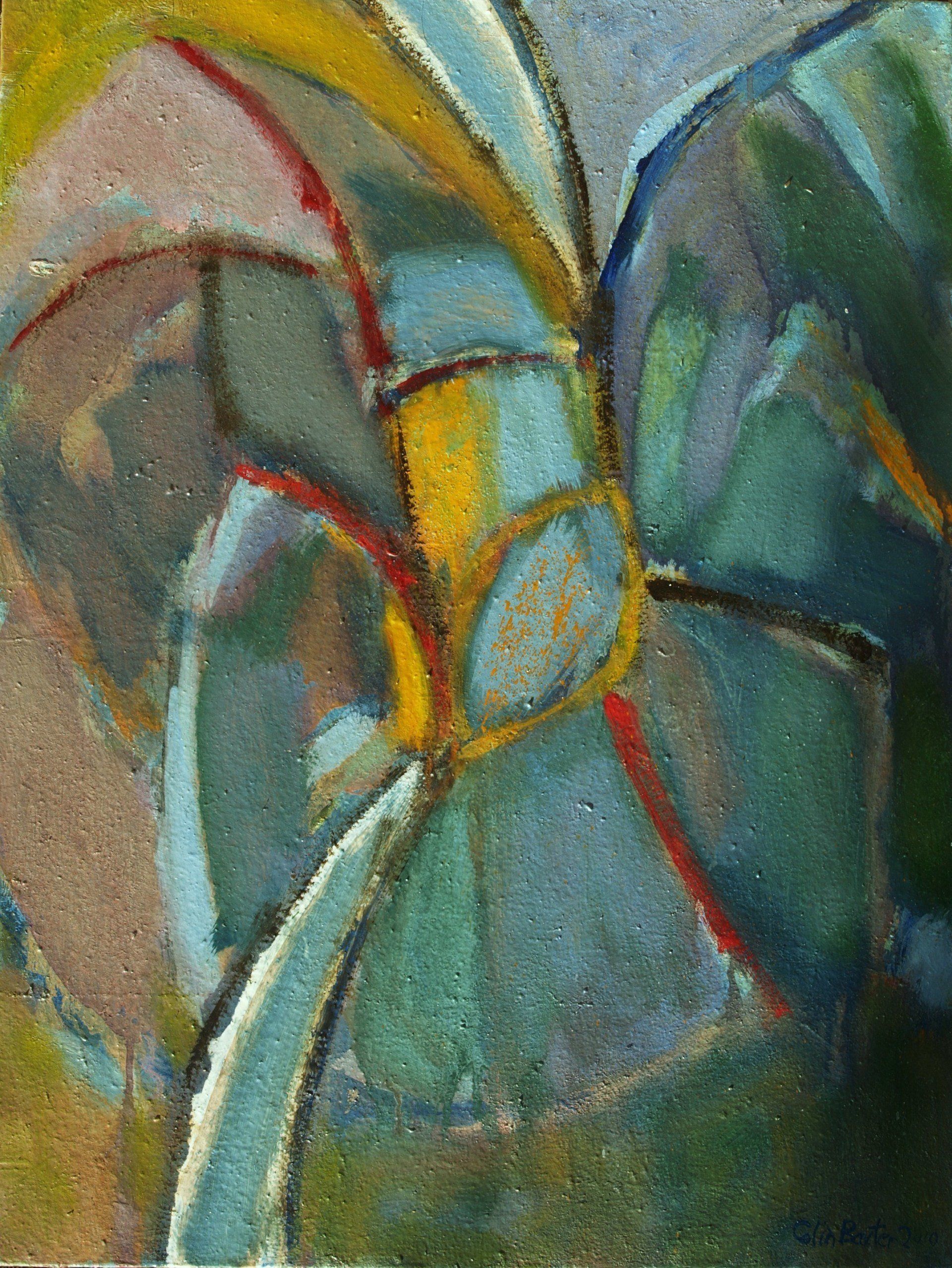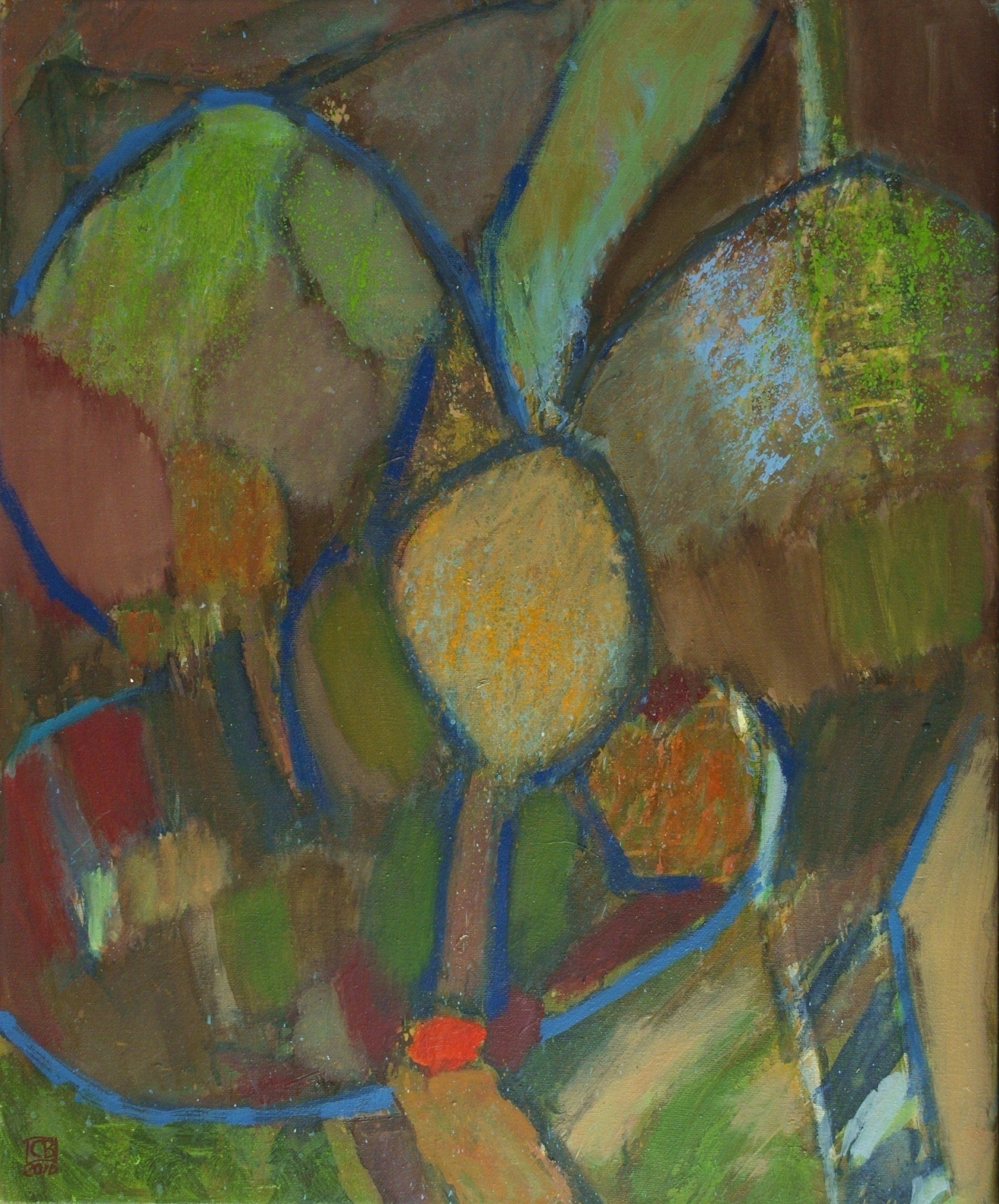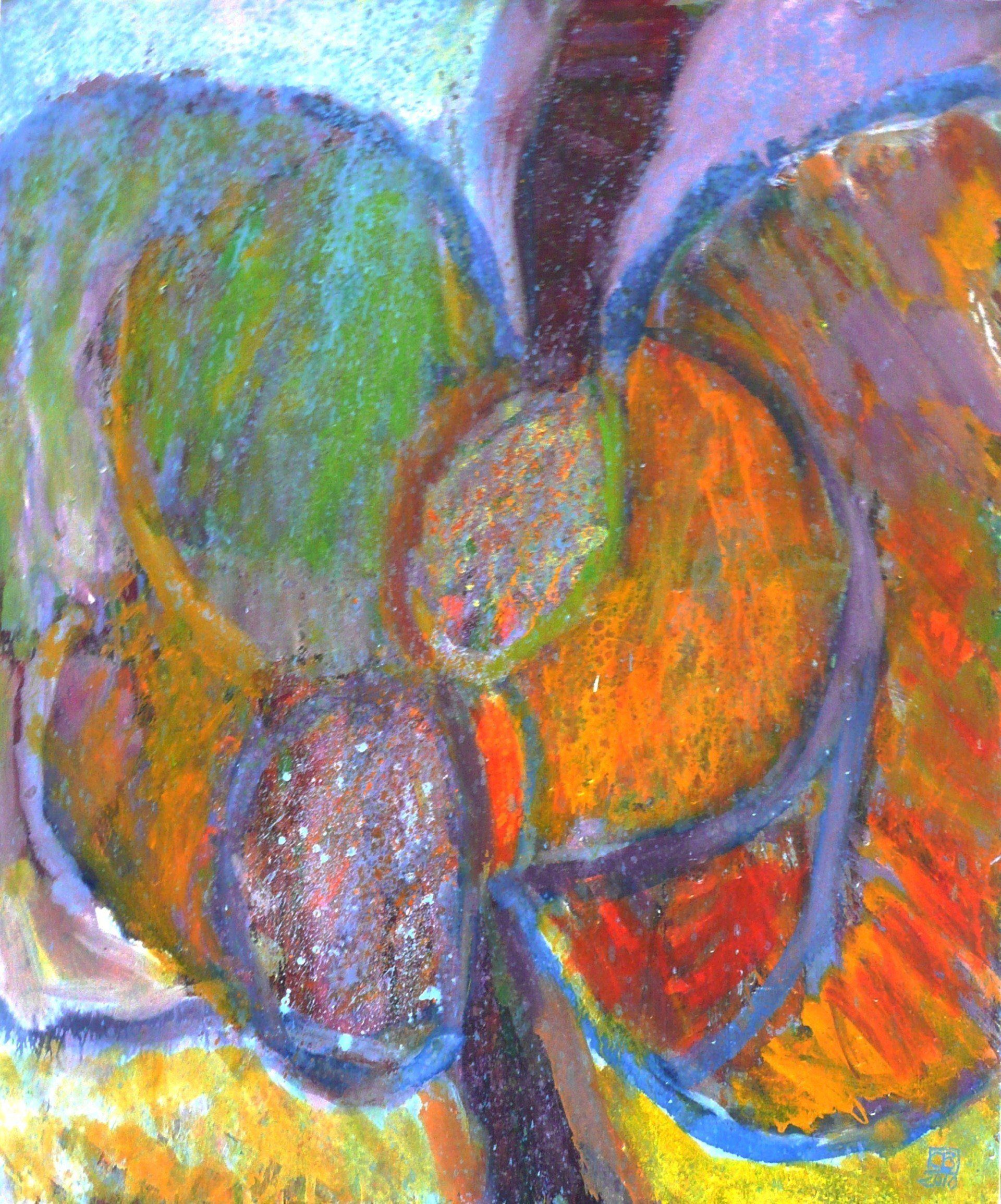 I was moving miles away from the original idea, hence the later ones called “After the apple”. Gradually a kind of format was emerging, by using variations on this it became much freer to indulge in colour and texture. I had now moved in to a world that was very abstract and like music deals in colours and rhythms.