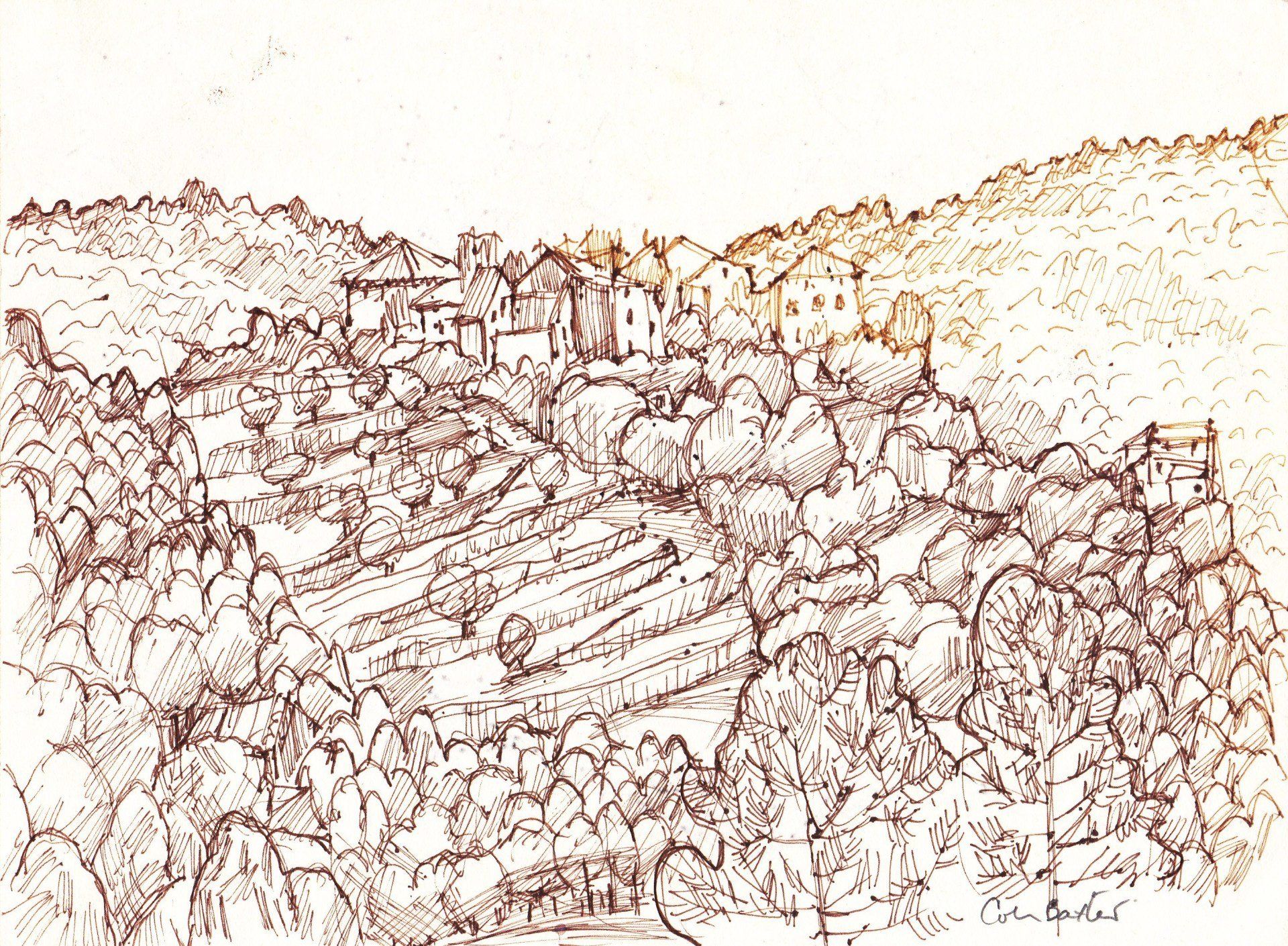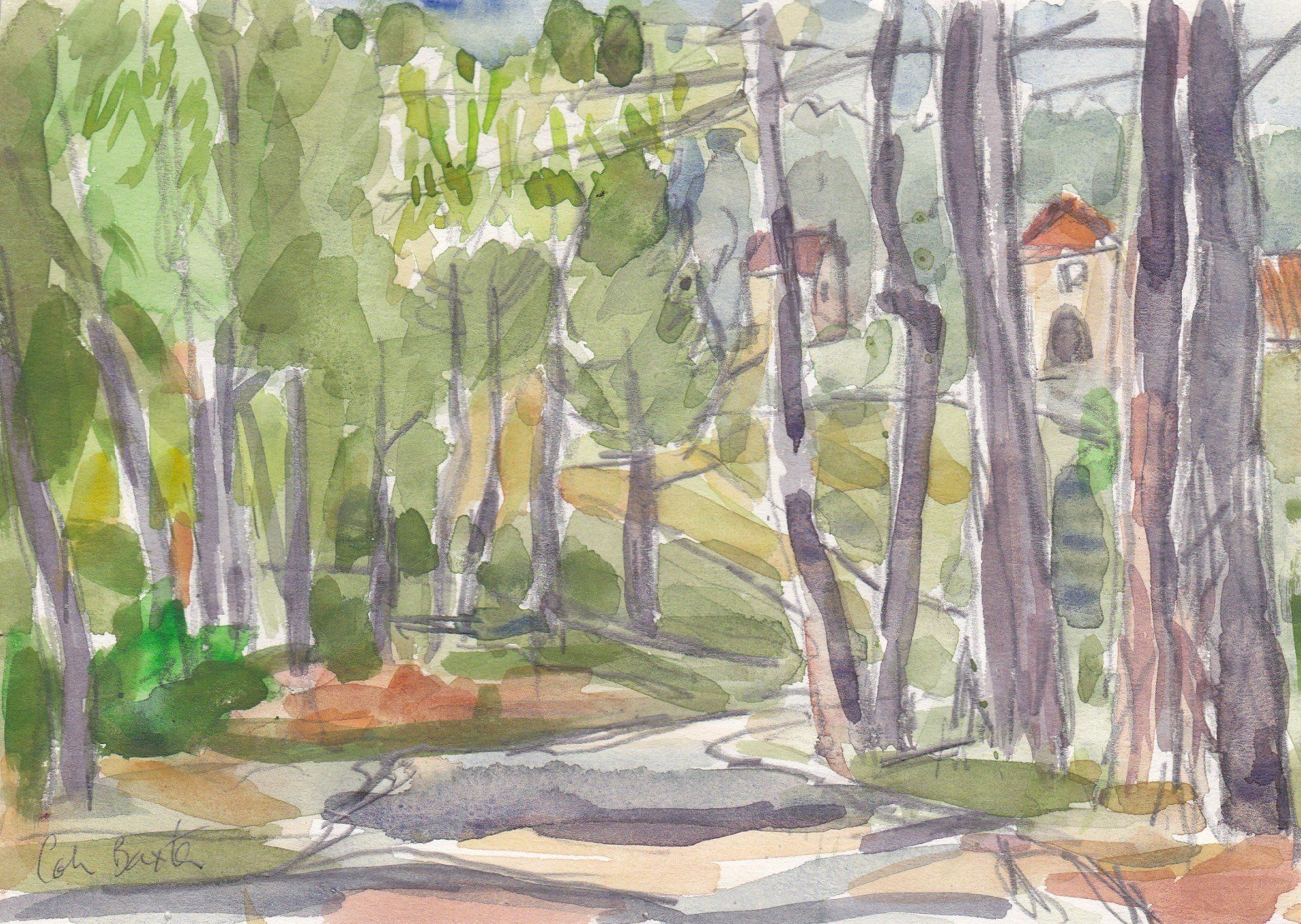 Sketch towards Barjac, water colour, 23cm x 19cm