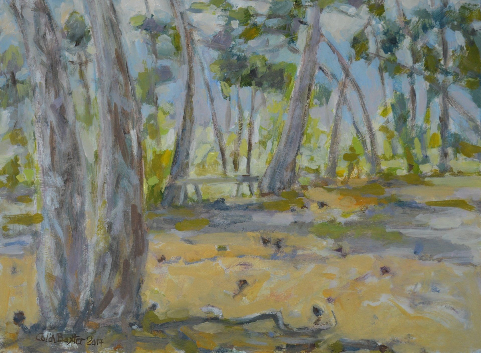 Tea break at Barry's Chambonas, 2017, oil on board, print only