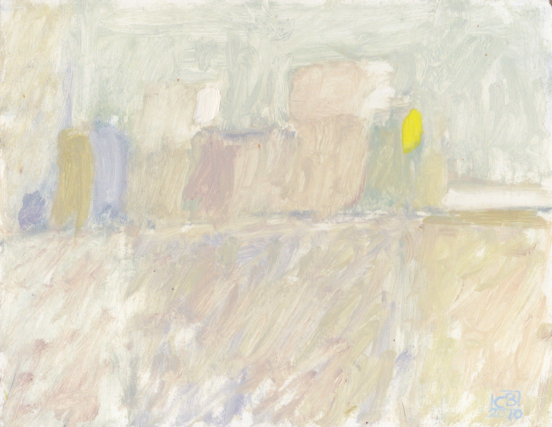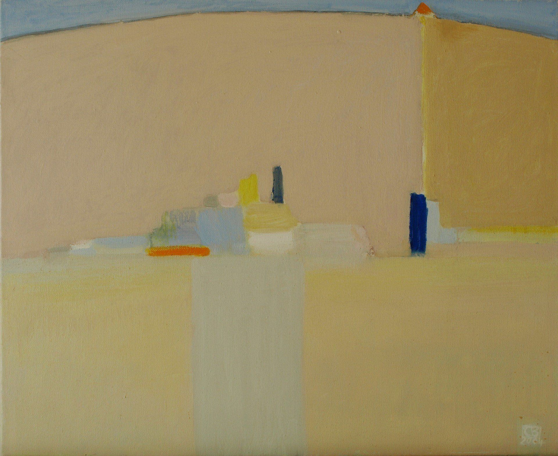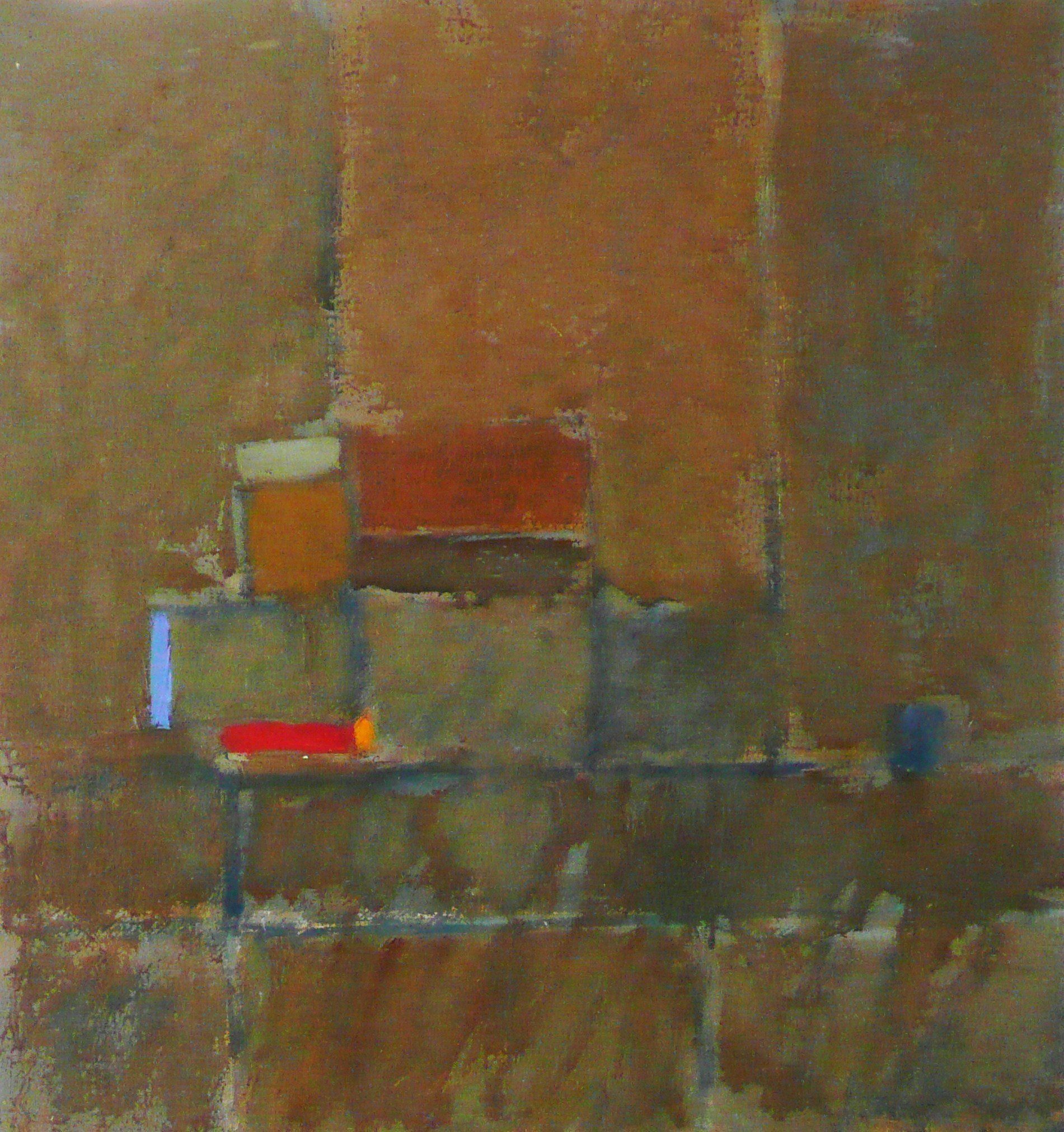 Then, years later I began to do a painting with simple blocks of colour, very similar to the original. In these later paintings there is an introduction of a horizontal line i.e. the horizon. The sense of a landscape by the locks of colour were the only things in the painting and I began to realise that once you limit yourself to just a scenario of a number of blocks then you could really start to play with the colours and see what they did to each other. Within the little area of the canvass I gradually realised that the moods and tensions were set up by these blocks of colour and their positions.