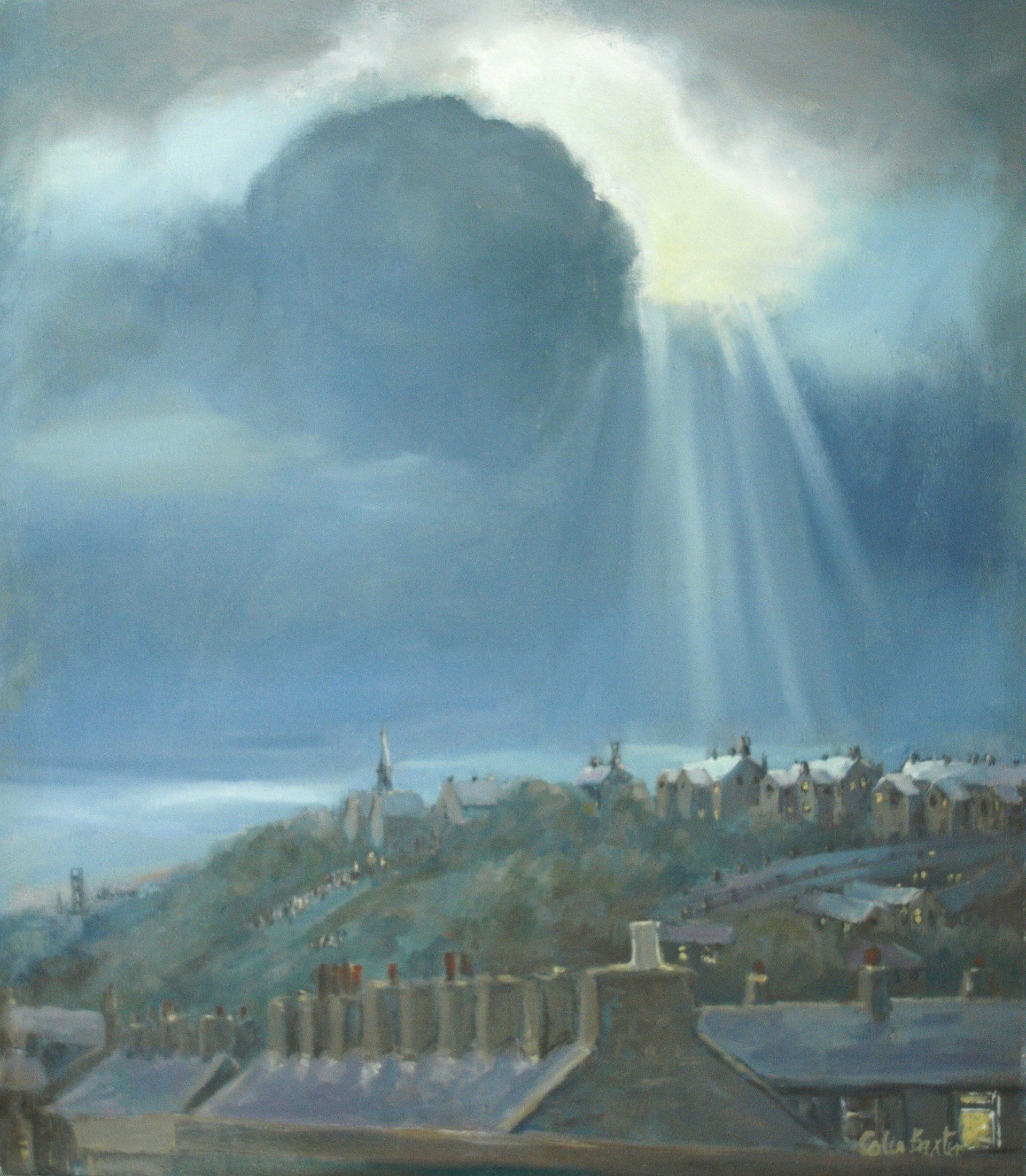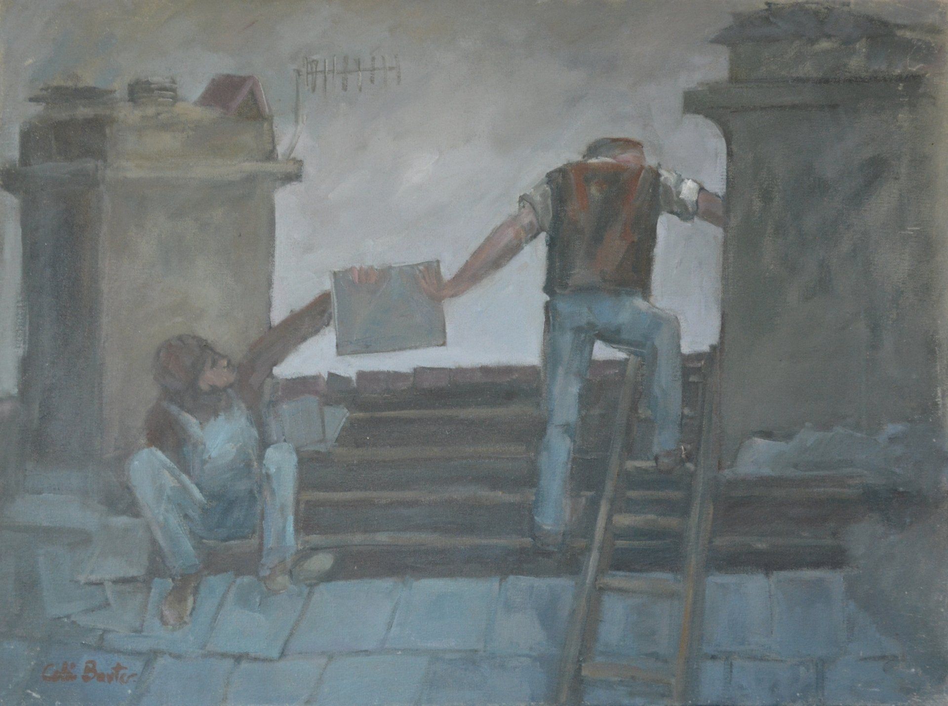 It is apparent in these paintings that I am painting what I see around me. They are not as a photo nor from a photo but in most cases, from drawings. As for the subject, having built roofs I am interested in this activity as much as a stormy sky. Making a pretty picture was never on my mind.