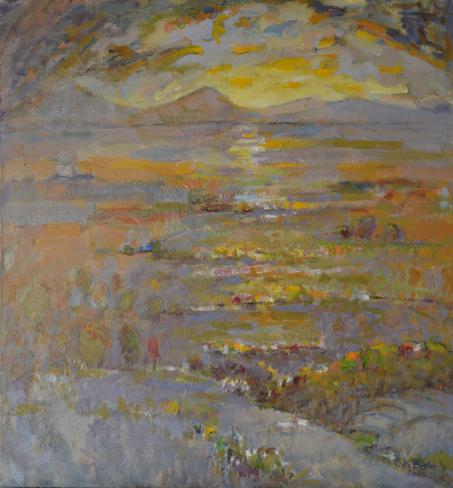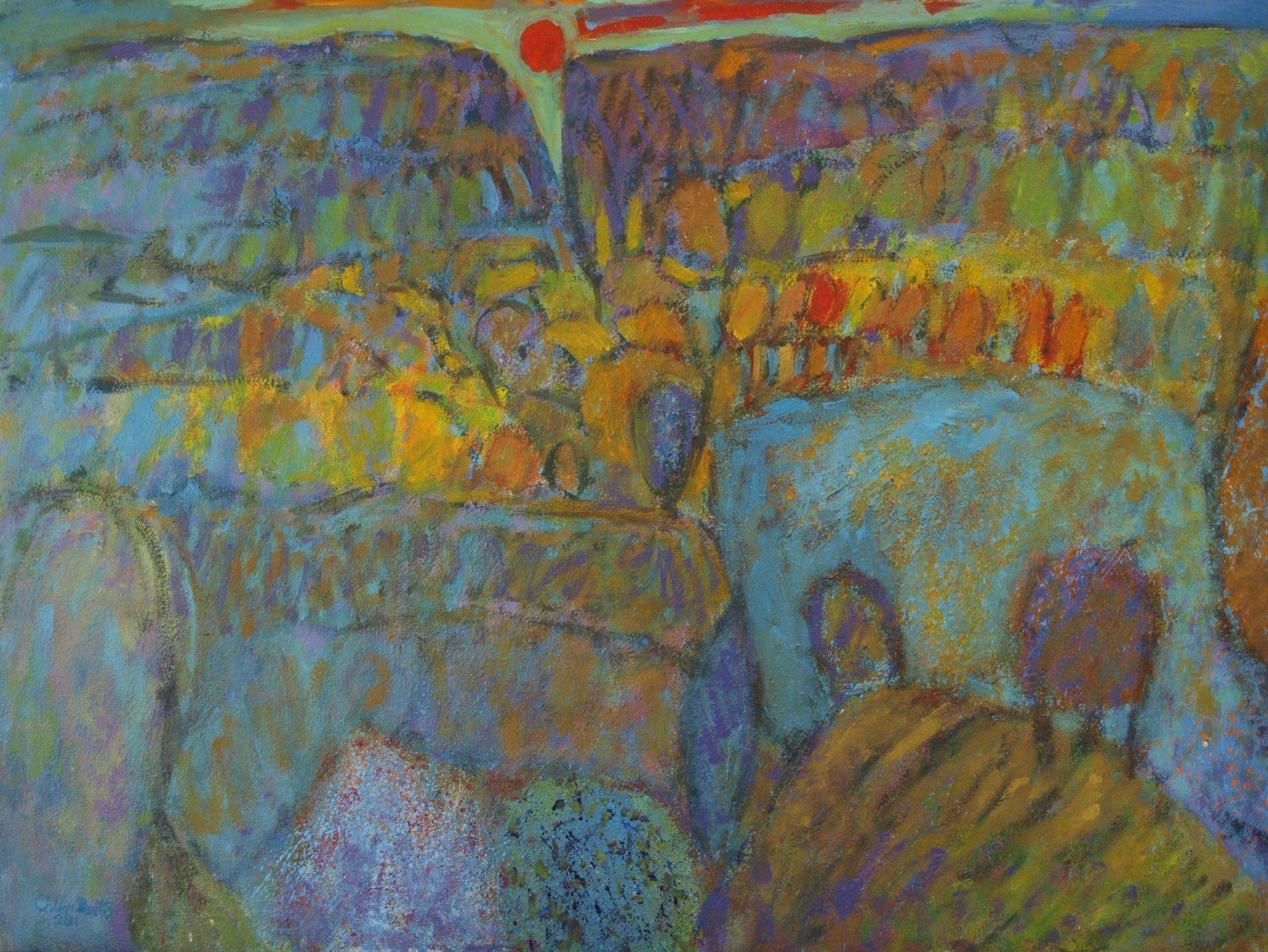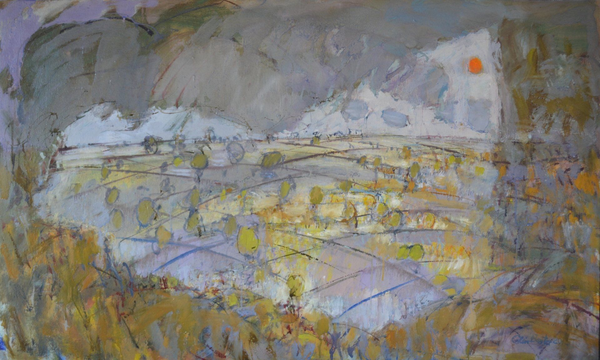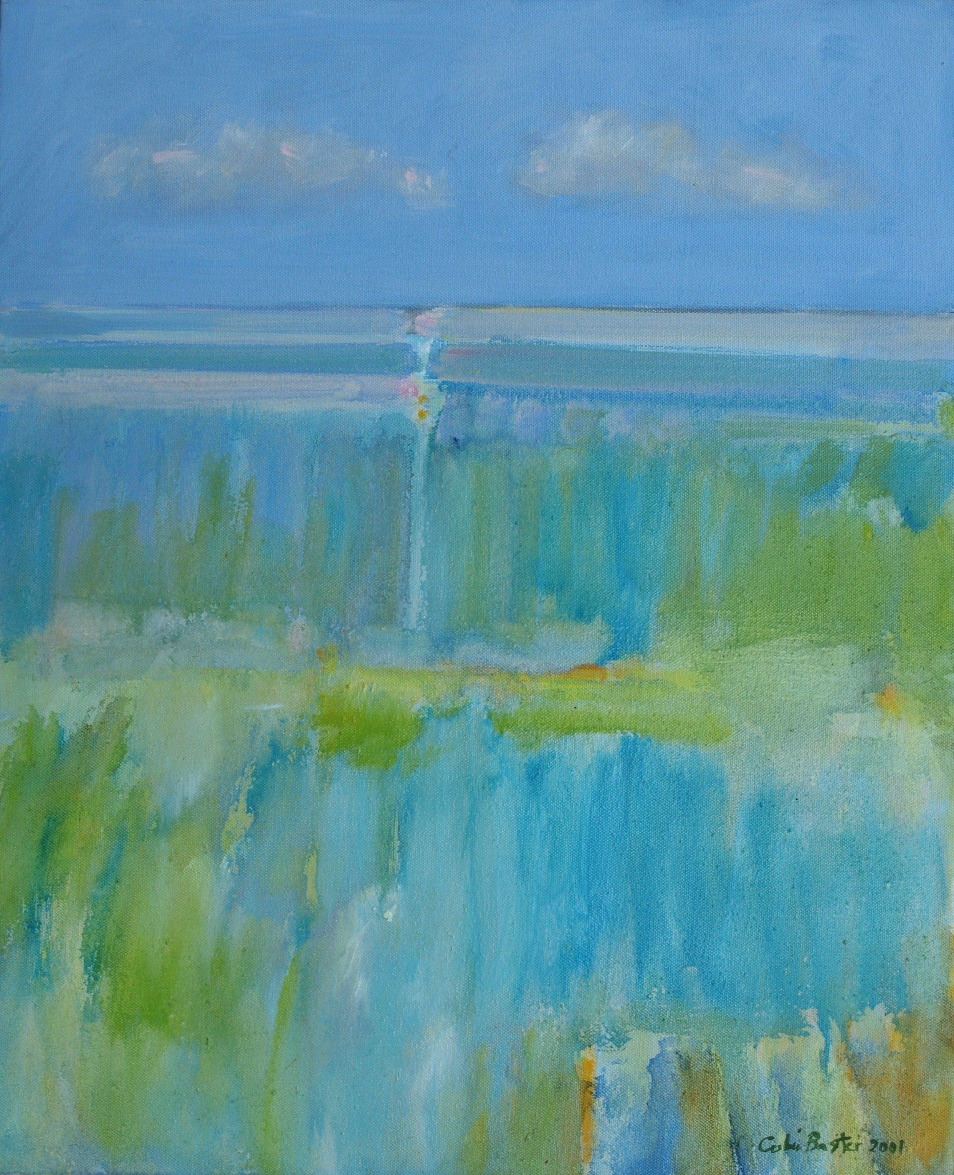 I remember seeing a painting by Van Gogh of grass, as if lit by the head lights of a car, all vertical strokes which you would see as flat patches of green in the daylight, but in the dark, it shows the energy of everything shooting upwards against gravity. Paint can be used to show movements in the landscape like the sky dripping into the land, as rain does. These are not images of the landscape, more about the living landscape.