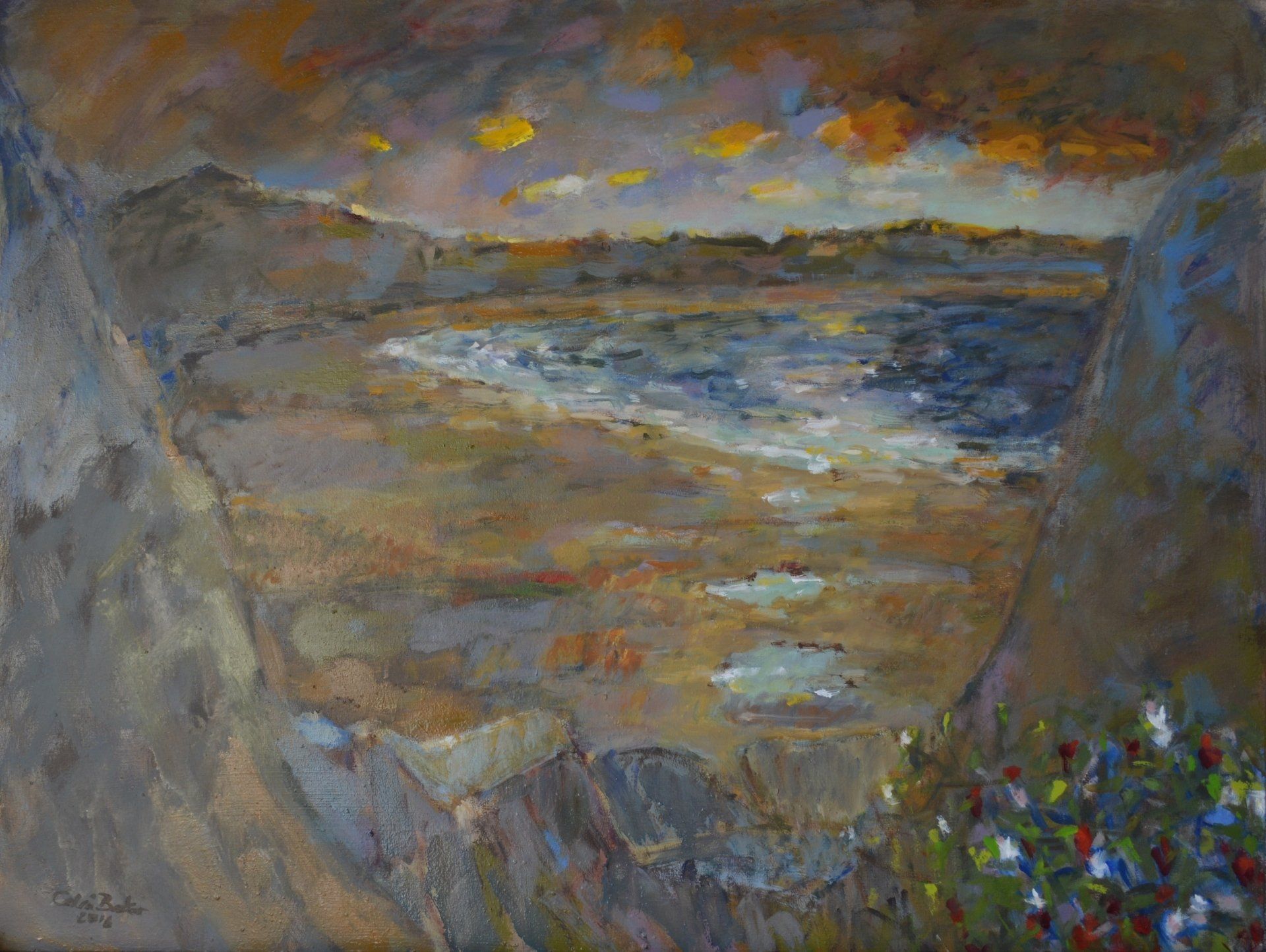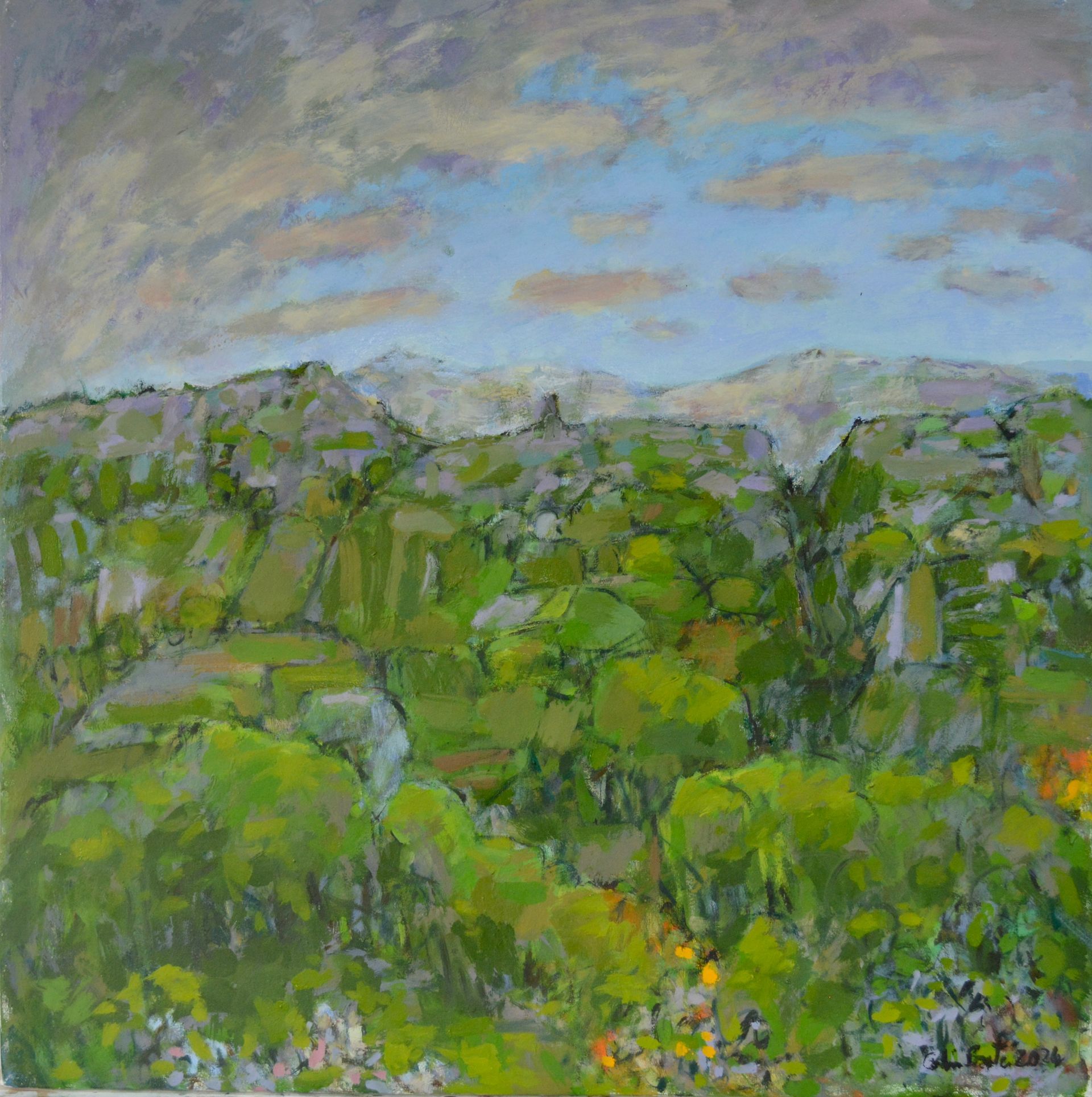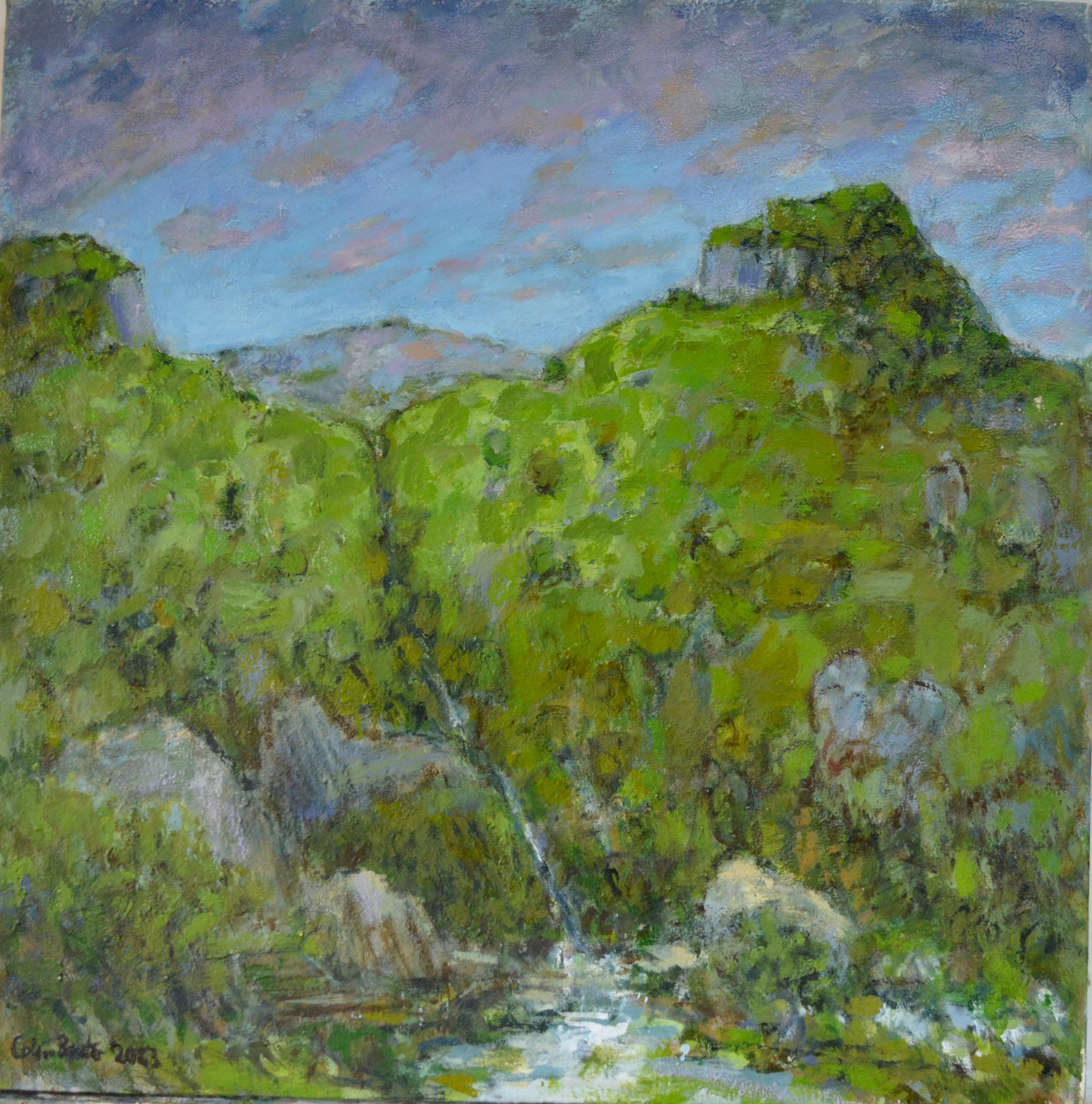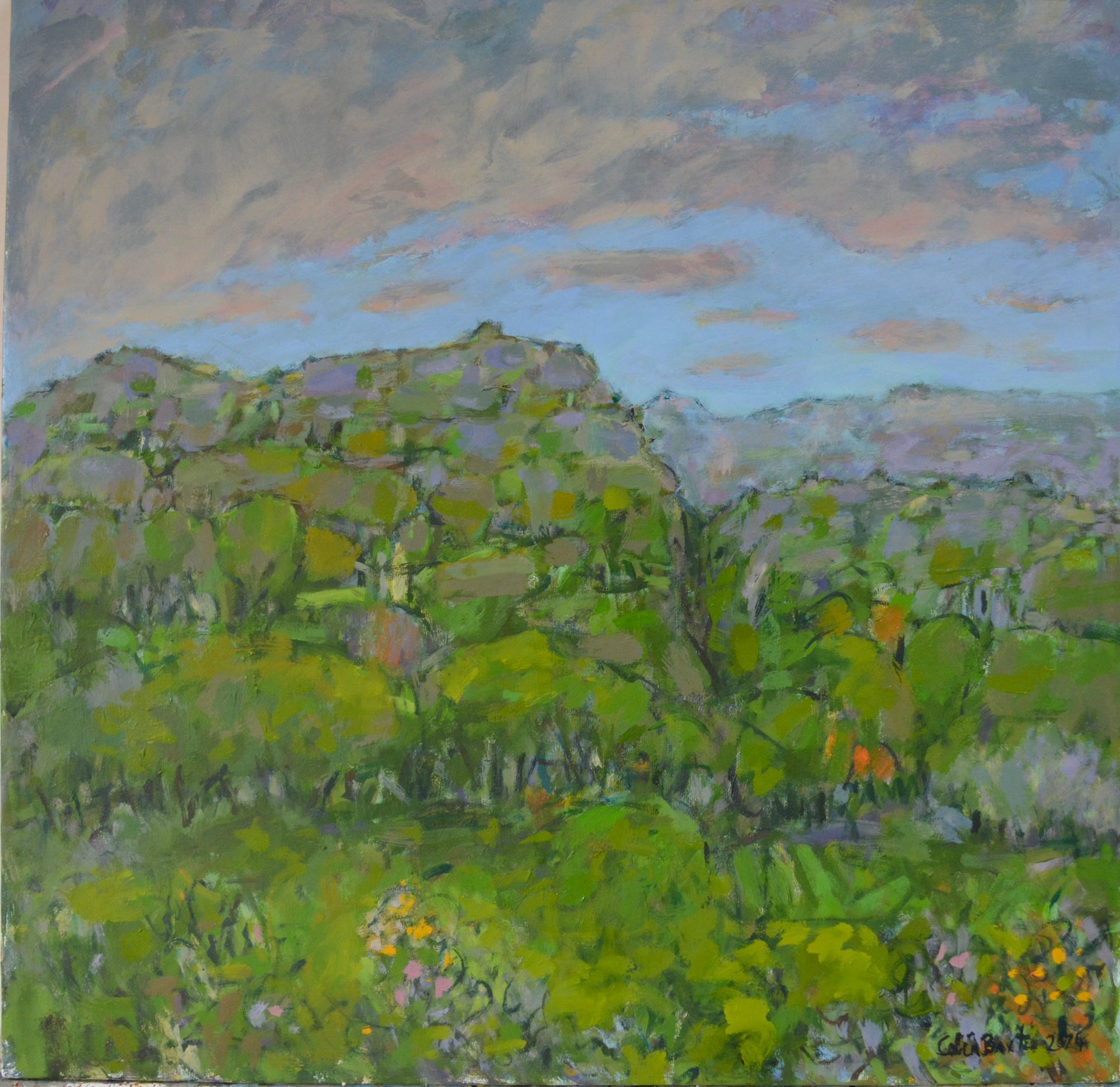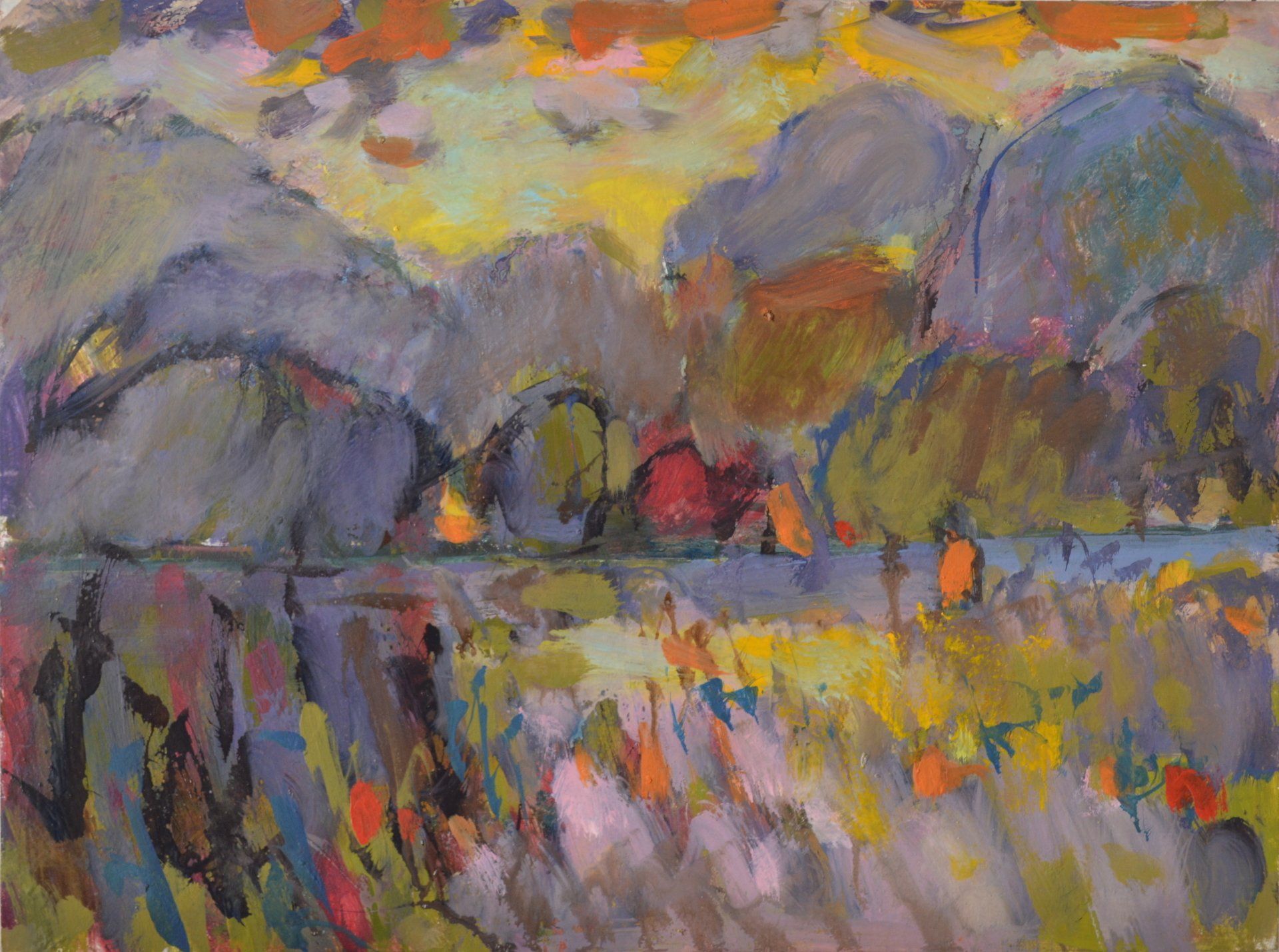 I remember seeing a painting by Van Gogh of grass, as if lit by the head lights of a car, all vertical strokes which you would see as flat patches of green in the daylight, but in the dark, it shows the energy of everything shooting upwards against gravity. Paint can be used to show movements in the landscape like the sky dripping into the land, as rain does. These are not images of the landscape, more about the living landscape.