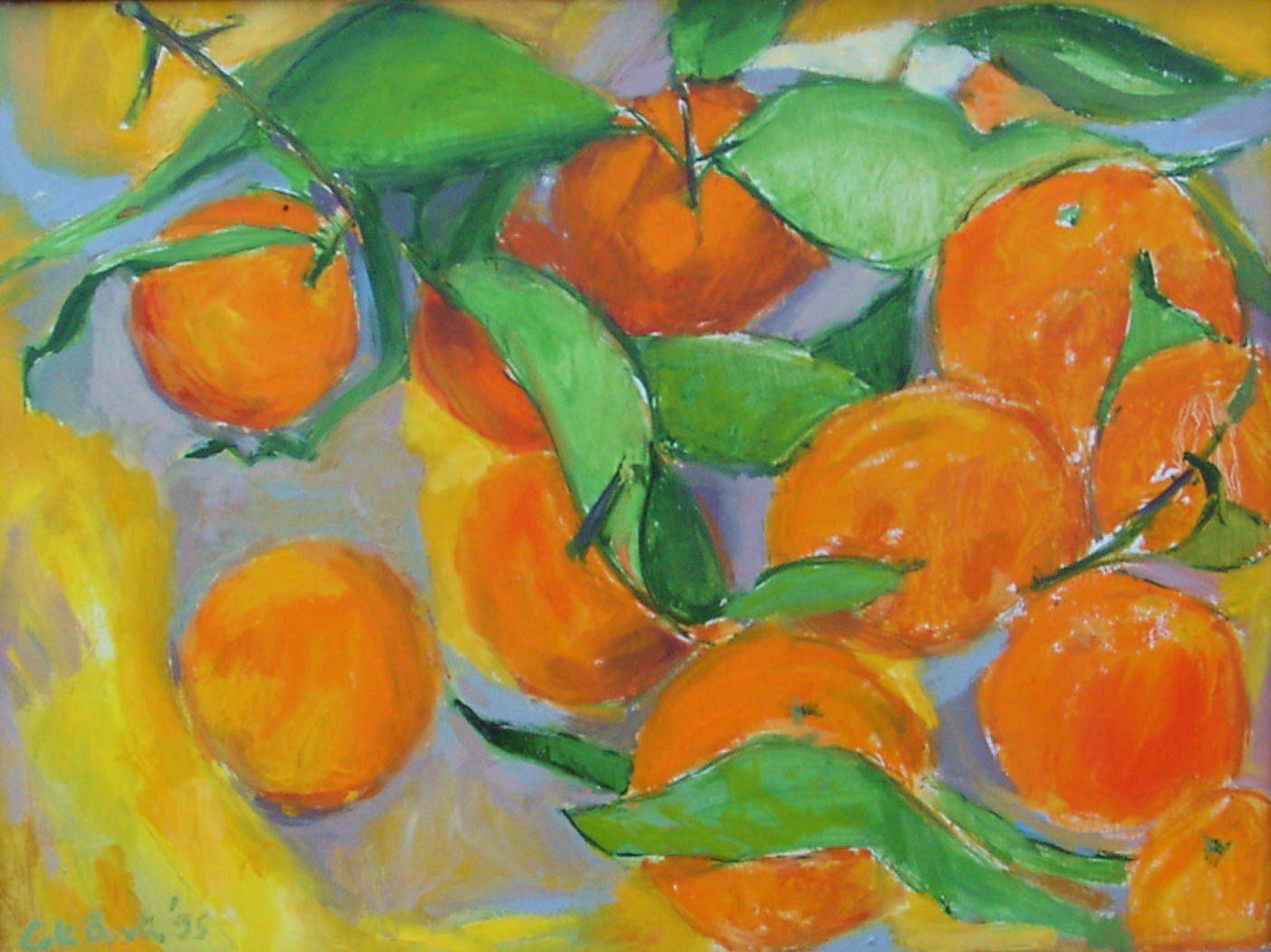 Clementines on carpet, 1998, oil on board, 60cm x 43cm