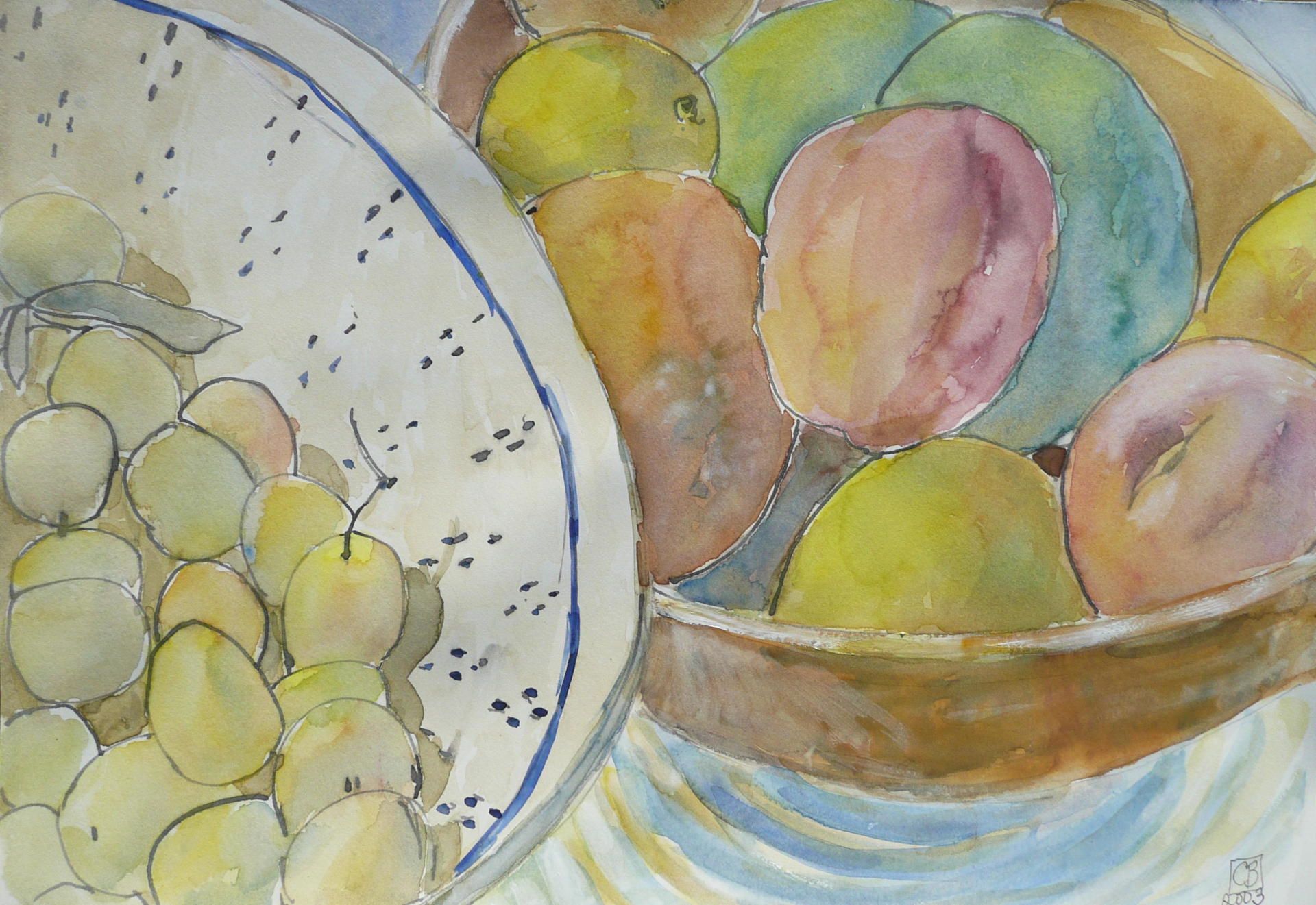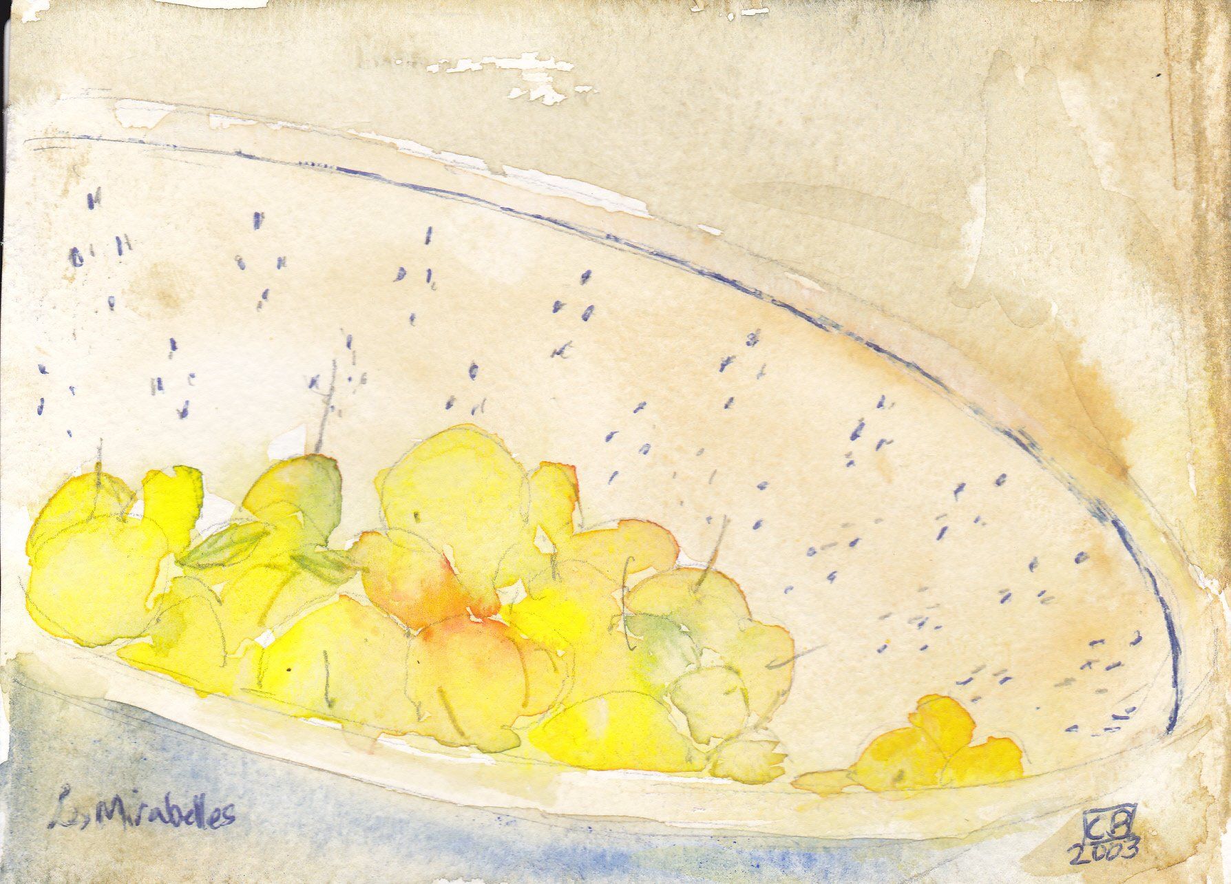 Mirabelles, plums and fruit, 2003, water colour, print only