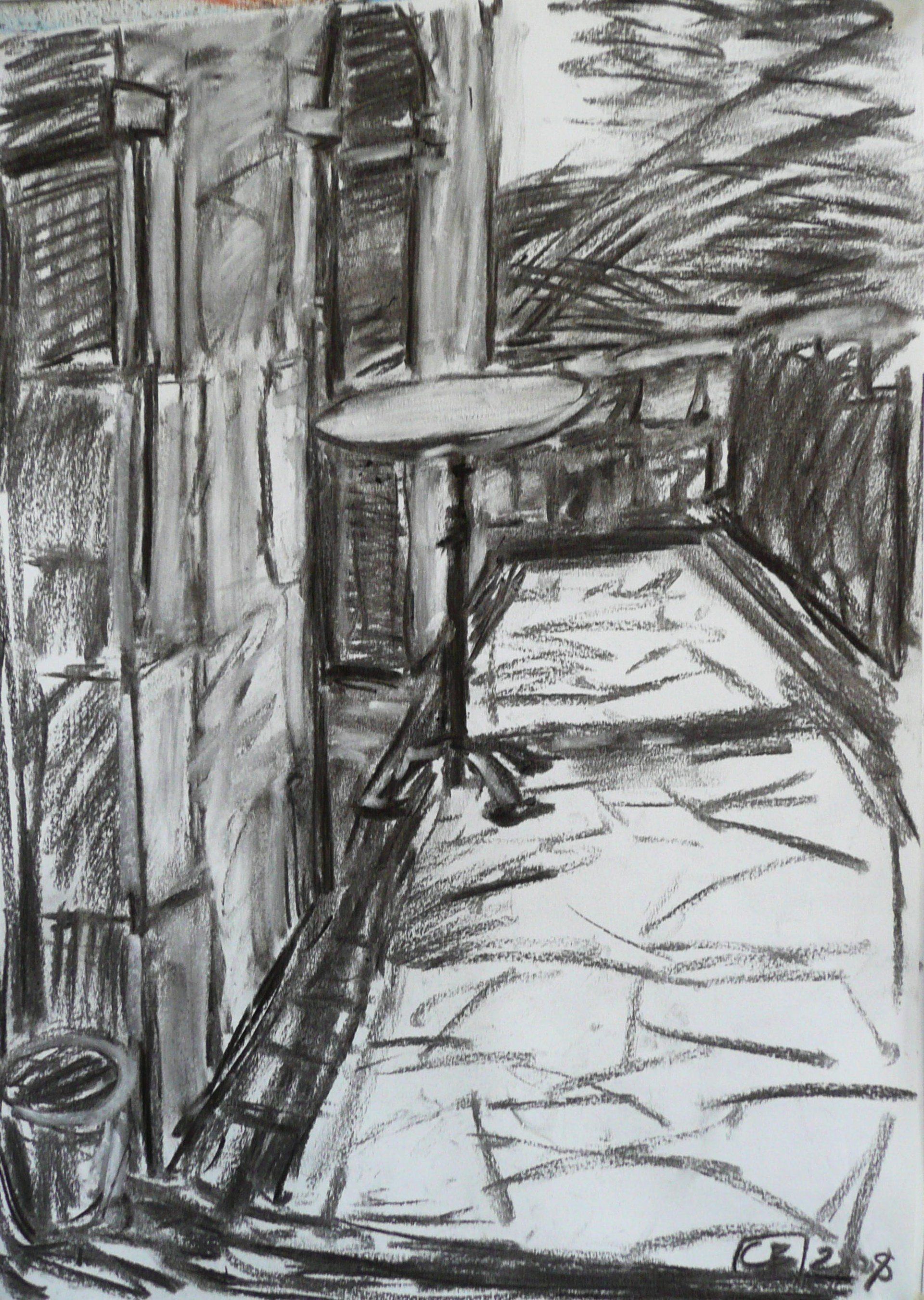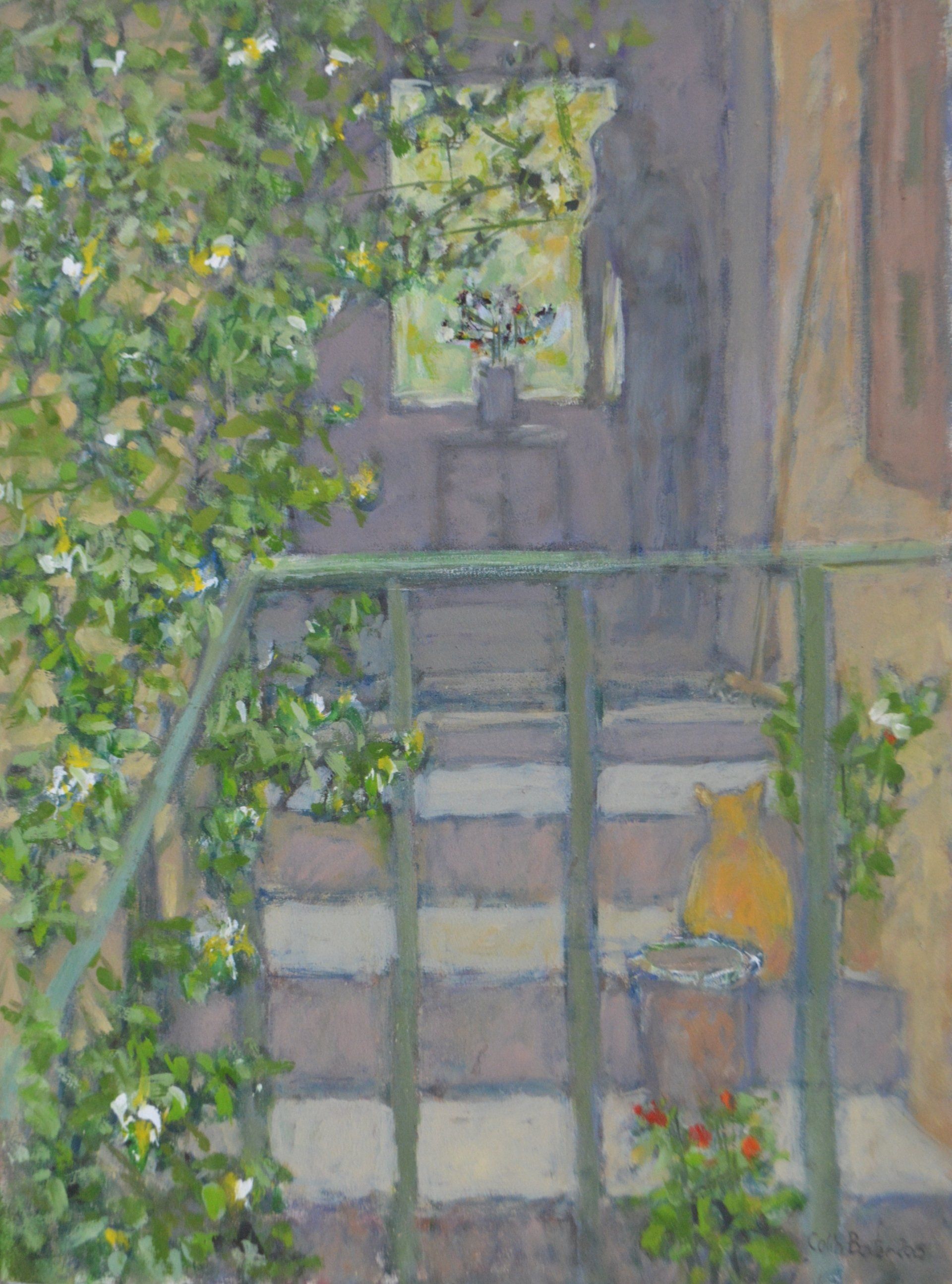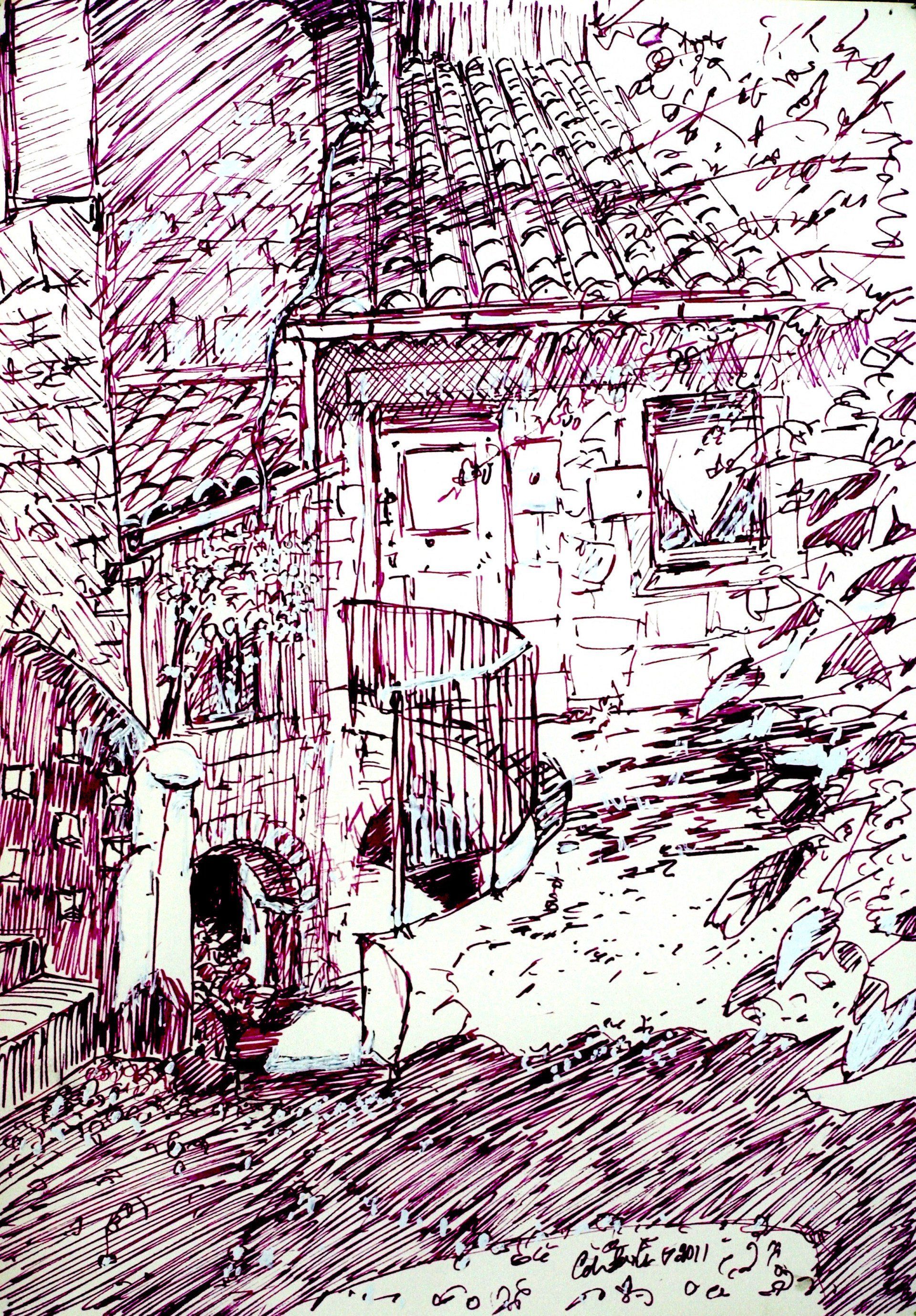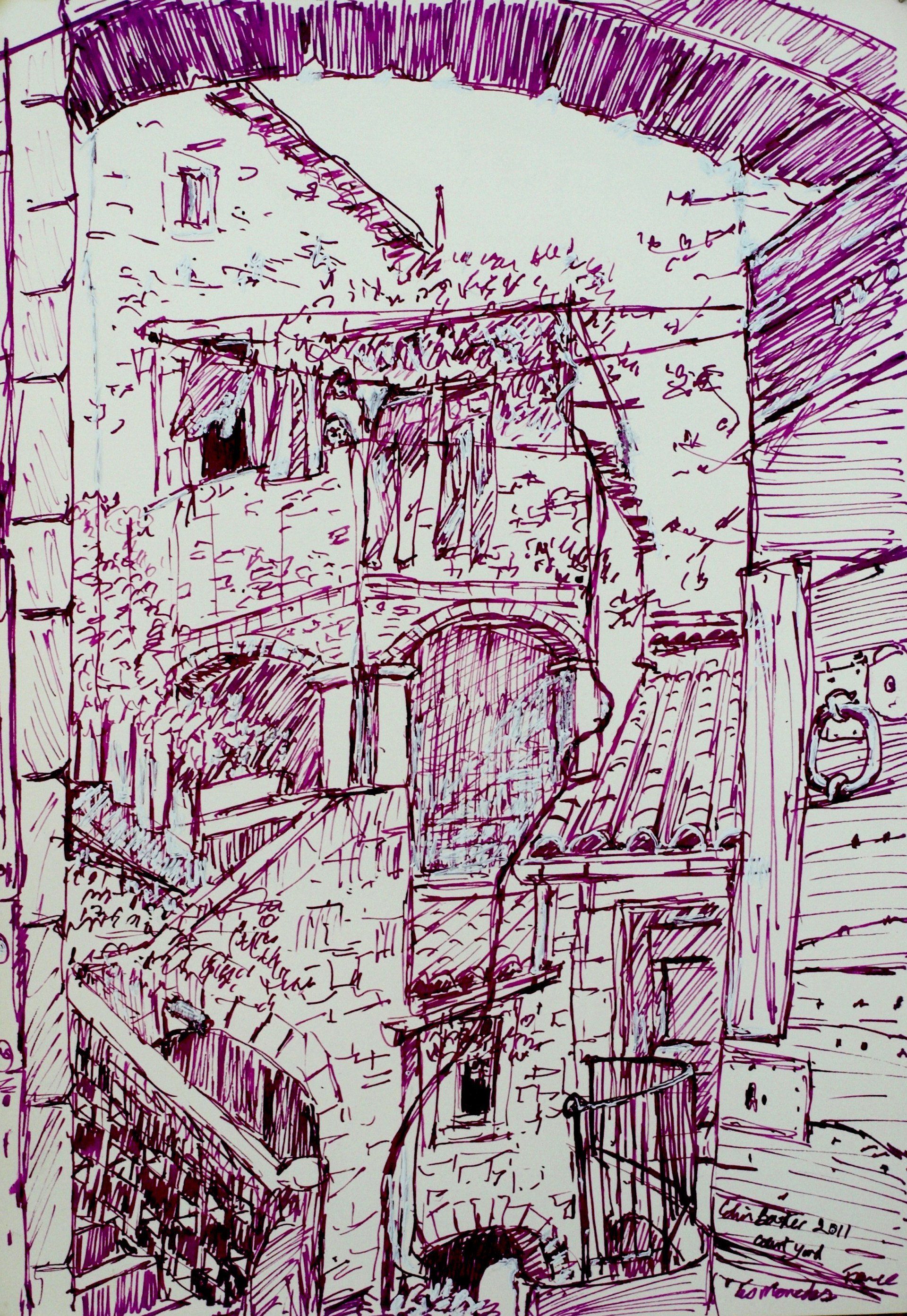 This selection of drawings and paintings is seeing and reacting to familiar surroundings. The old buildings nestle in the landscape. The garden is nature adjusted a little but always trying to revert back to the wild. It is this closeness to nature that I like and that i have a slight hand in it.