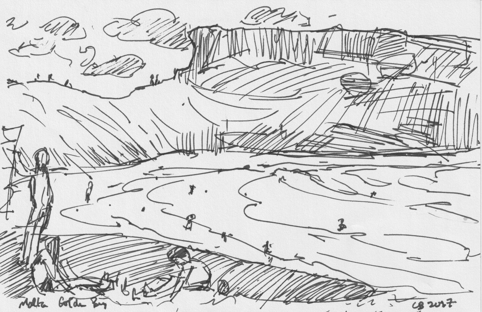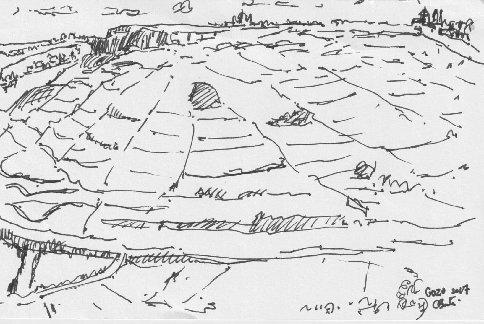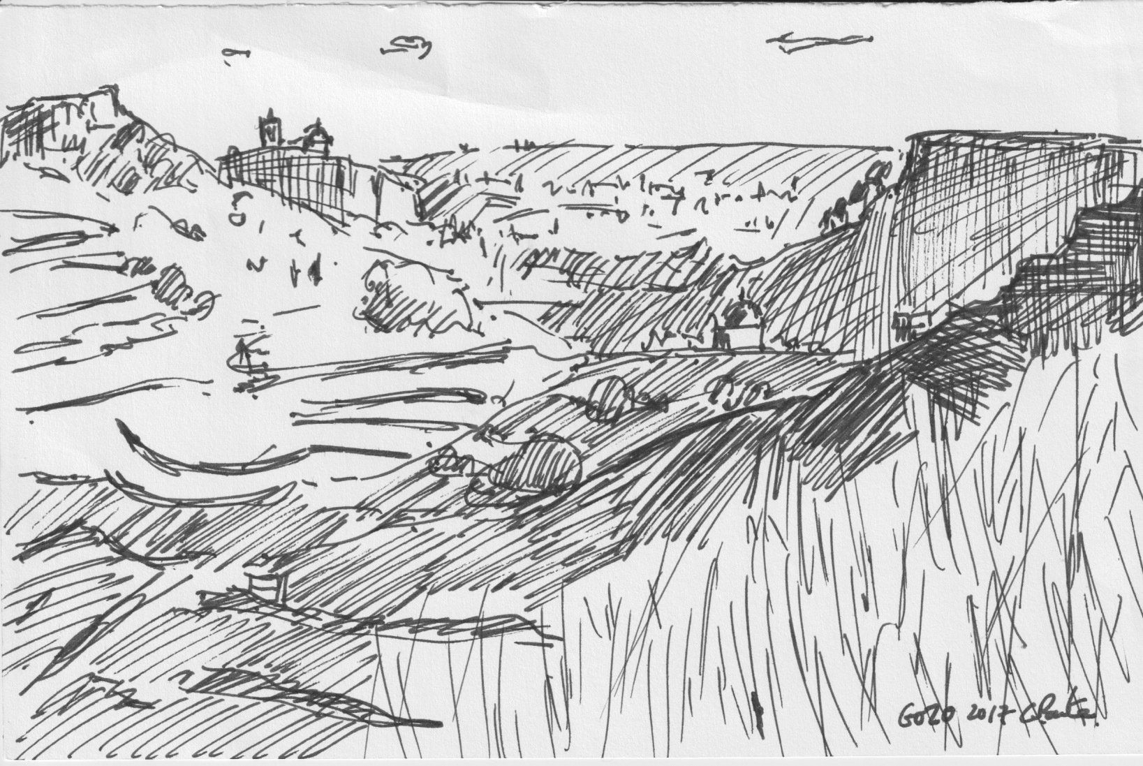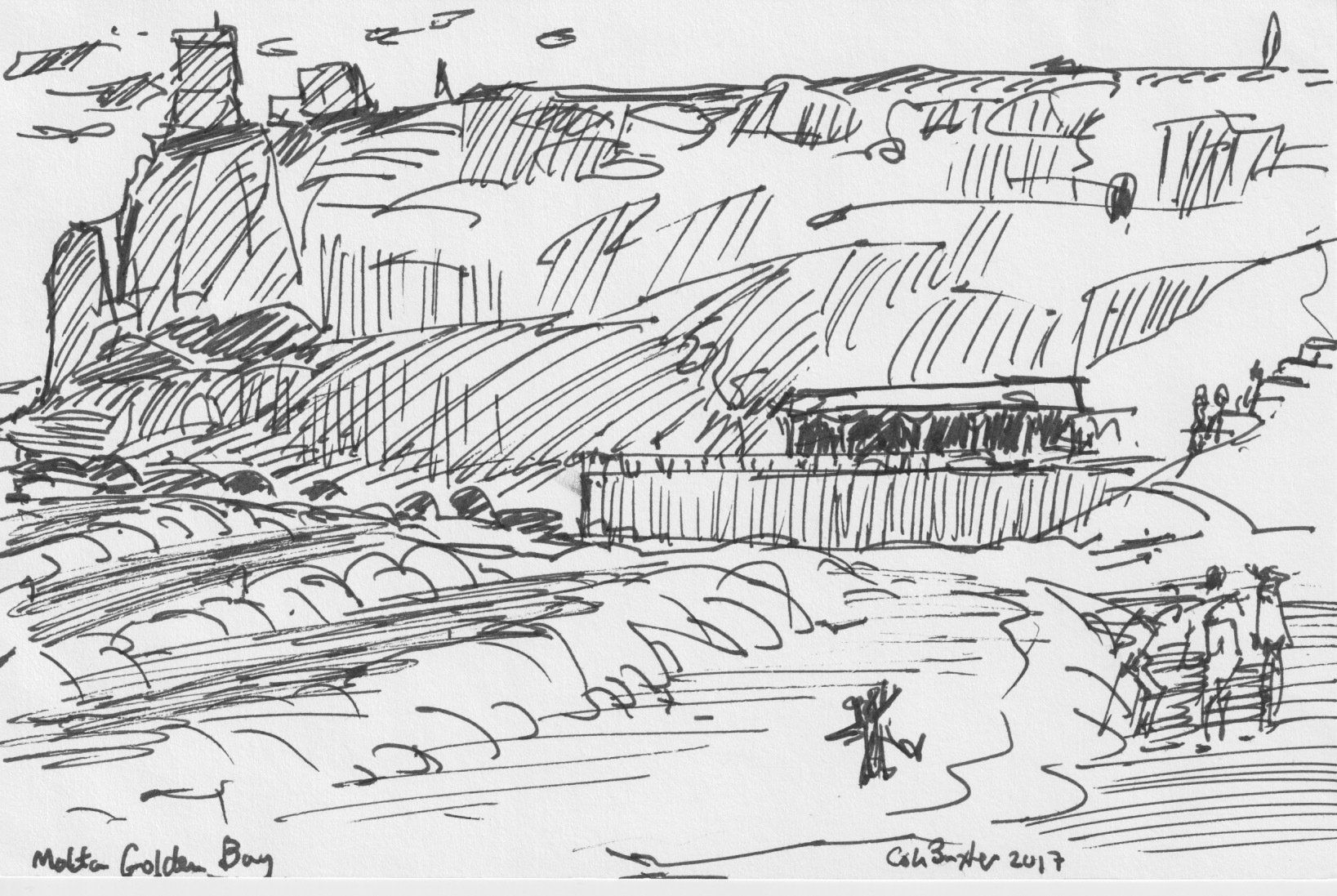 Across St Paul's Bay, Malta, 2017, ink on paper, print only