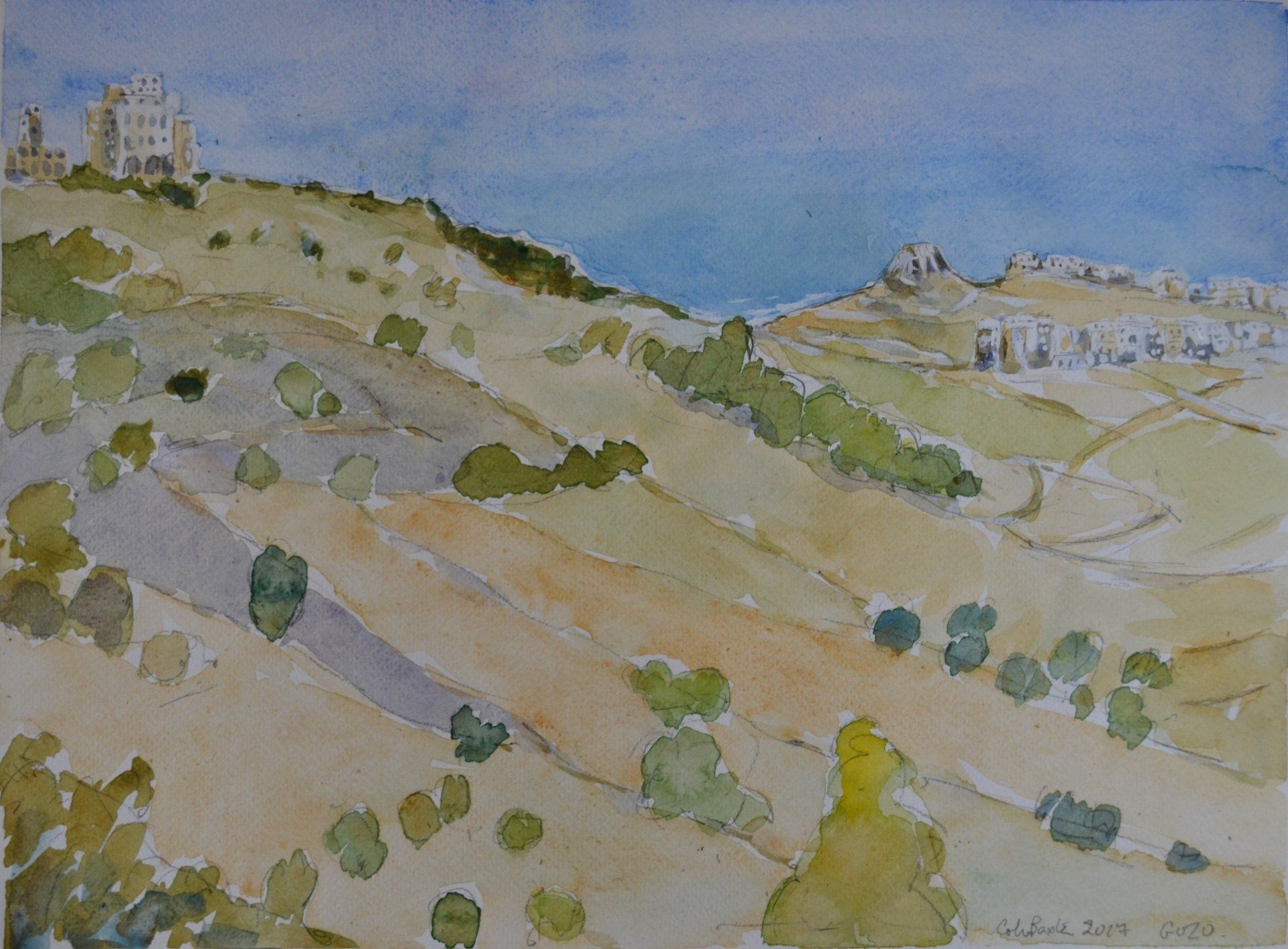 After the rain, St Paul's Bay, Malta, 2017, water colour, print only
