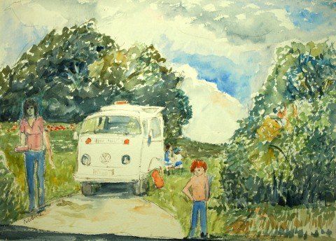 Colin did lots of pencil and ink sketches of us, my brothers and I, when we were growing up. It’s our equivalent of a photo album; camping in the old VW van, cycling on the street, tying up shoe laces, picnics by the river...
