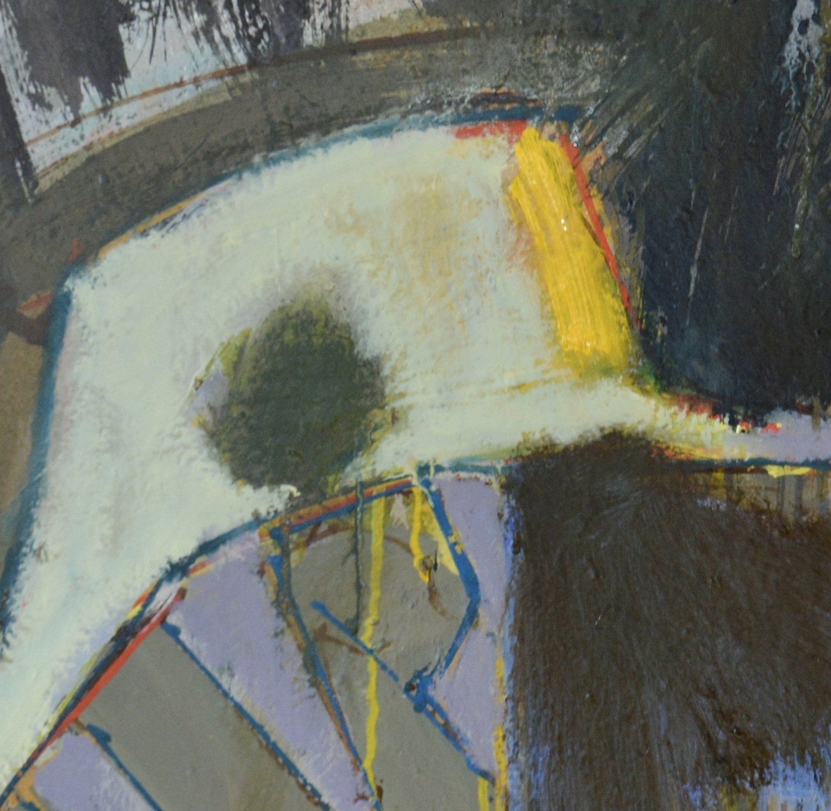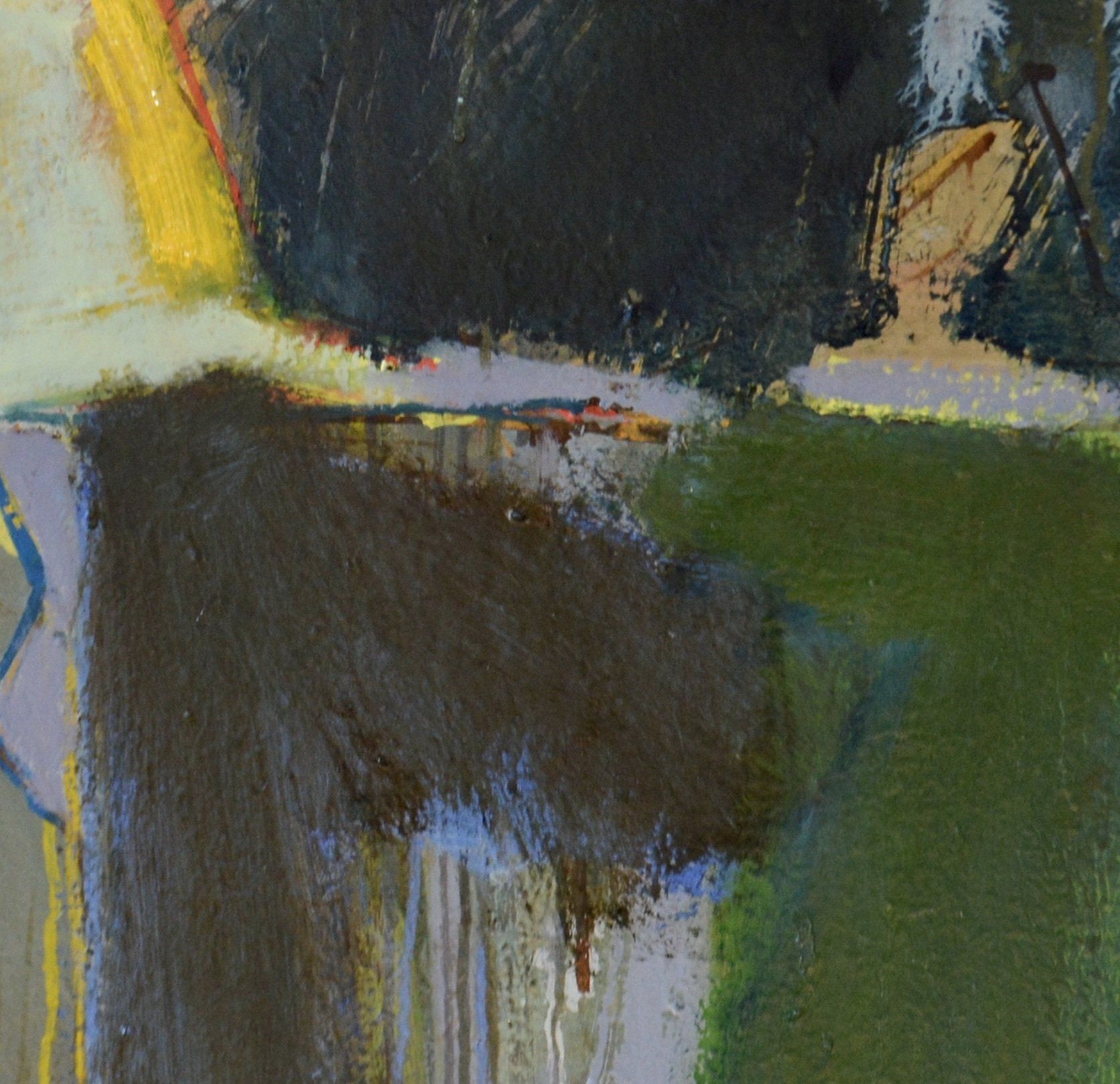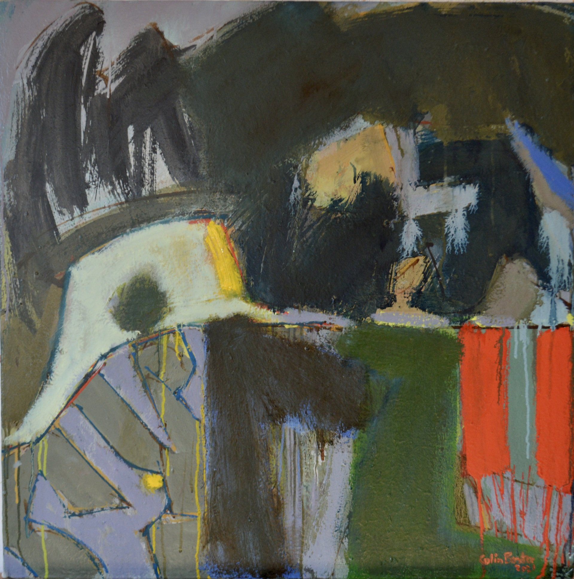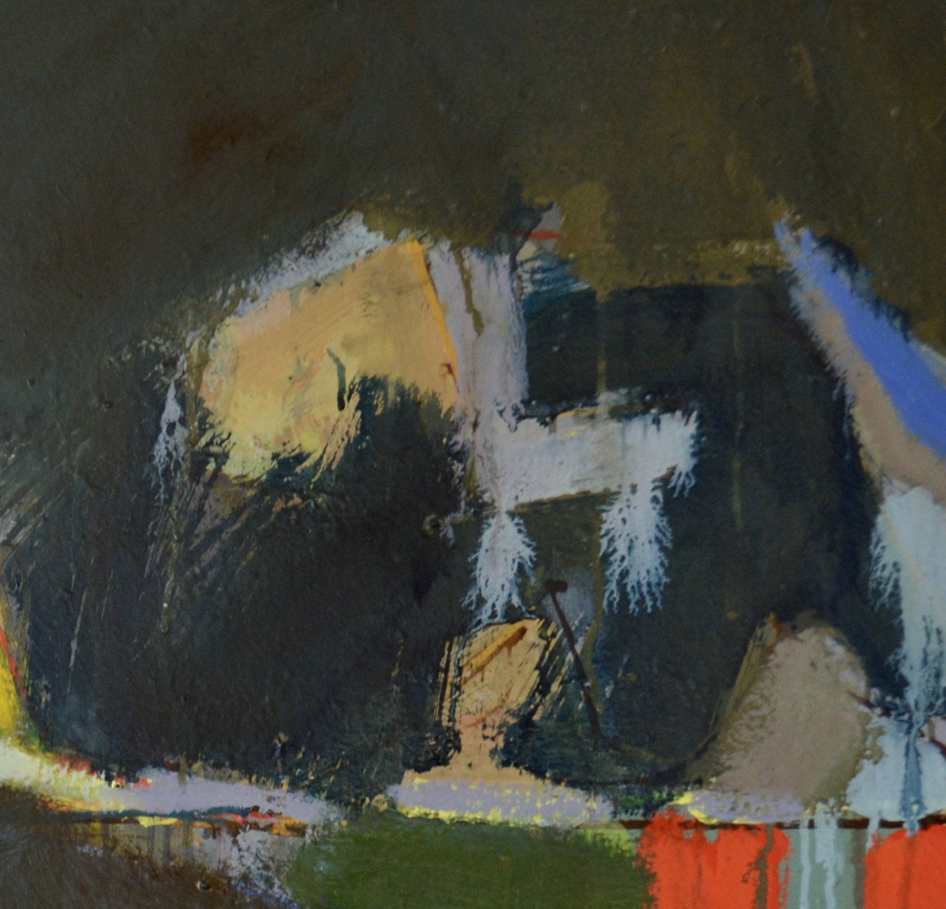 This painting evolved over many days. started as a landscape but moved into a more abstract area. I “let go” trying not to think (not easy). Guided by a mark, then a reaction to it, aware of colour, tone, composition, space, wet or dry paint. The key elements being “ Chance and Control". Let it happen, then decide the next move.