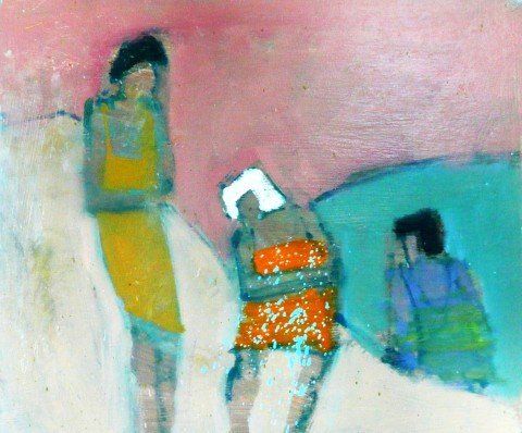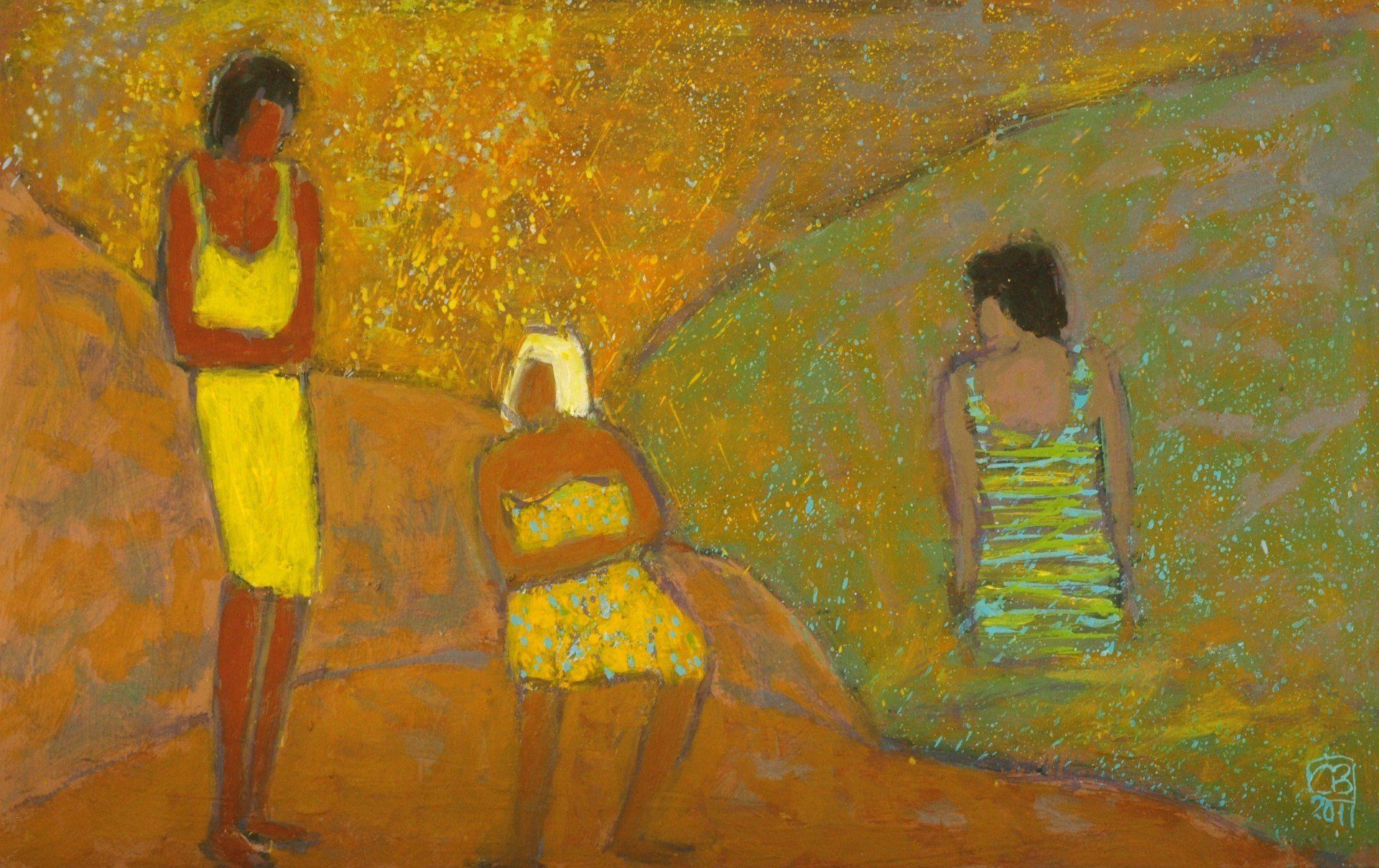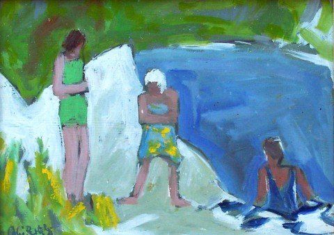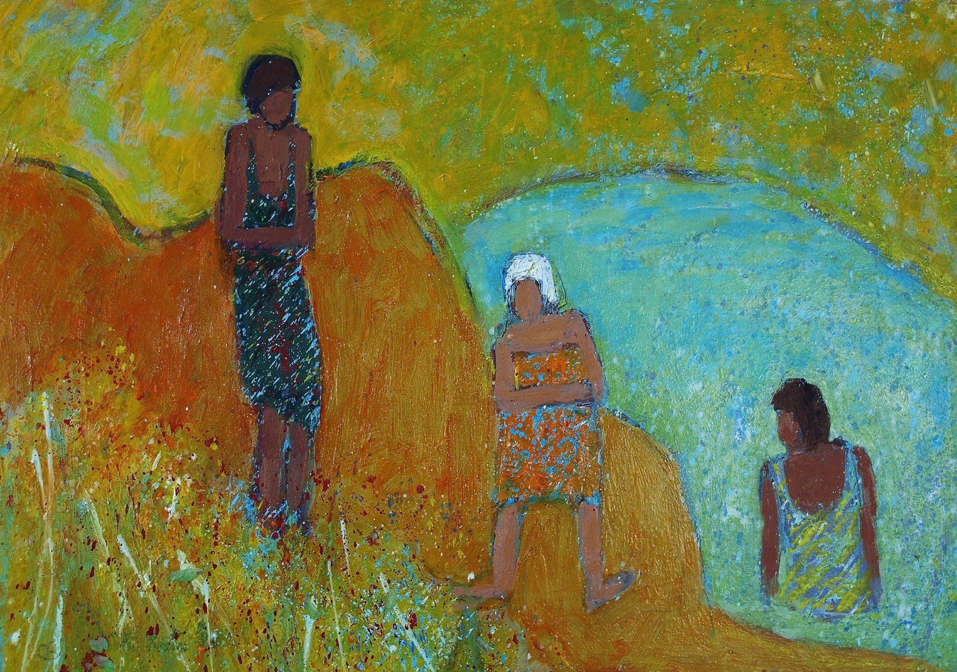 A turn of events years later, I saw practically the same group of people and I realised that the white haired lady was in fact a man with a towel around him. I had misinterpreted all along thinking it was 3 women, which made no difference to what I was doing, but it put another slant on it, making me think that it isn’t necessarily what you see, it’s what you are doing with what you see that is important. As with many of the series, after a period of time, I tend to pick up where I left off and continue.